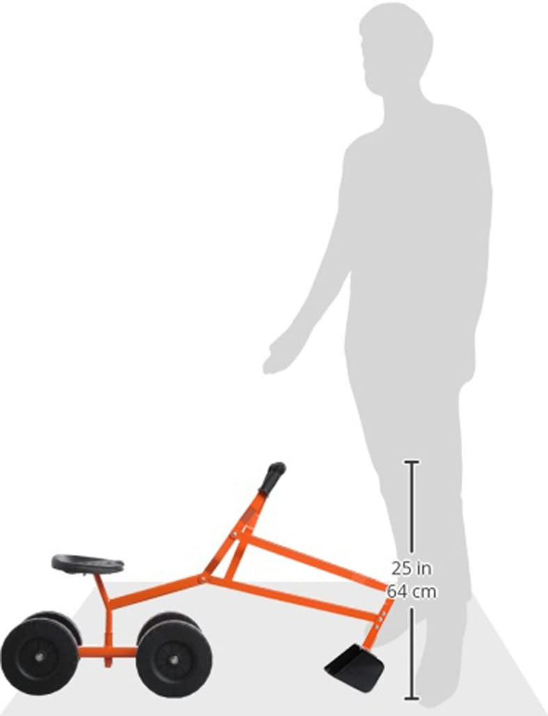 Baggi hat rot metallrahmen große Räder, grabschaufel,sitz i griffe zum Bewegen des Arms.