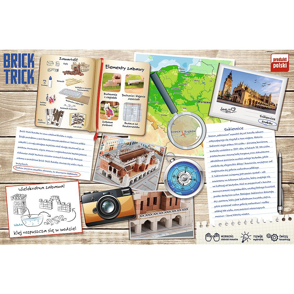 Sie stammt aus der Serie Bauen mit Brick - Brick Trick, ermöglicht den Bau von Modellgebäuden mit echten Ziegeln, Holz und dekorativen Elementen wie Gras oder Kieselsteinen. Unter den Modellen Ziegelstein-Trick finden schöne Dörfer, Städte und mittelalterliche Burgen und Schlösser.