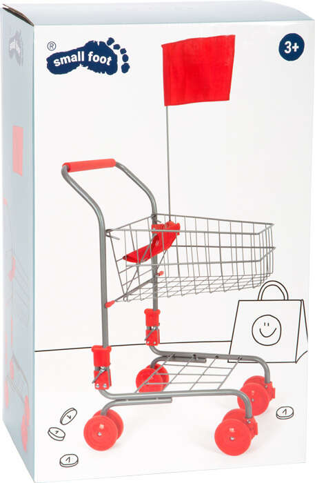 Der Kinder-Einkaufswagen mit roten Akzenten und einer Flagge ist ein tolles Geschenk für Kleinkinder, die gerne auf dem Markt spielen. Mit dem Einkaufswagen können sie nicht nur in die Rolle eines Verkäufers, sondern auch in die eines Kunden schlüpfen, wenn sie im Laden spielen. Die Höhe des Wagens beträgt zusammen mit der Fahne 98 cm.