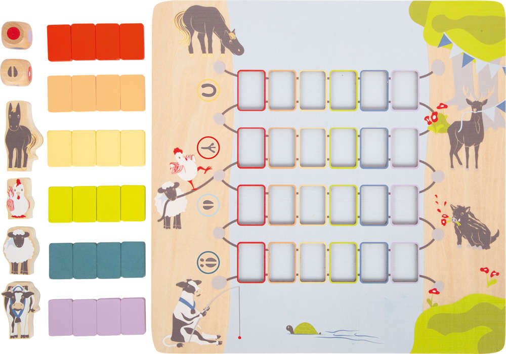 Helfen Sie Ihrem Haustier, auf die andere Seite des Flusses zu gelangen, und seien Sie der Erste, der dies tut! Die Aufgabe der Spieler besteht darin, die Würfel zu werfen und die gezogene Farbe auf dem Spielbrett zu platzieren.