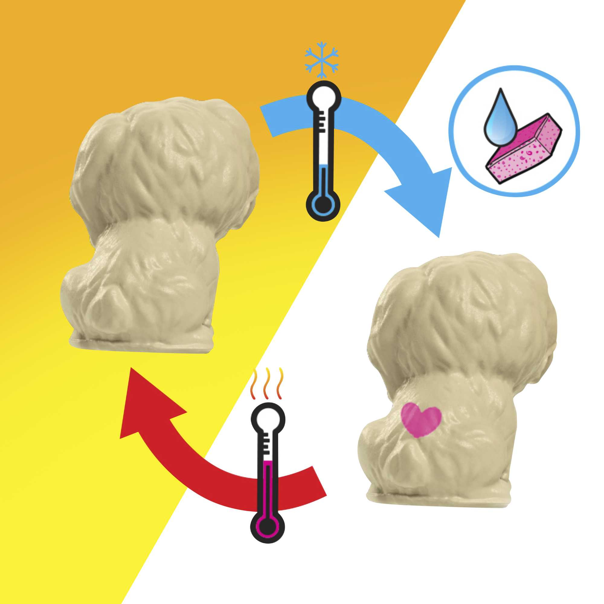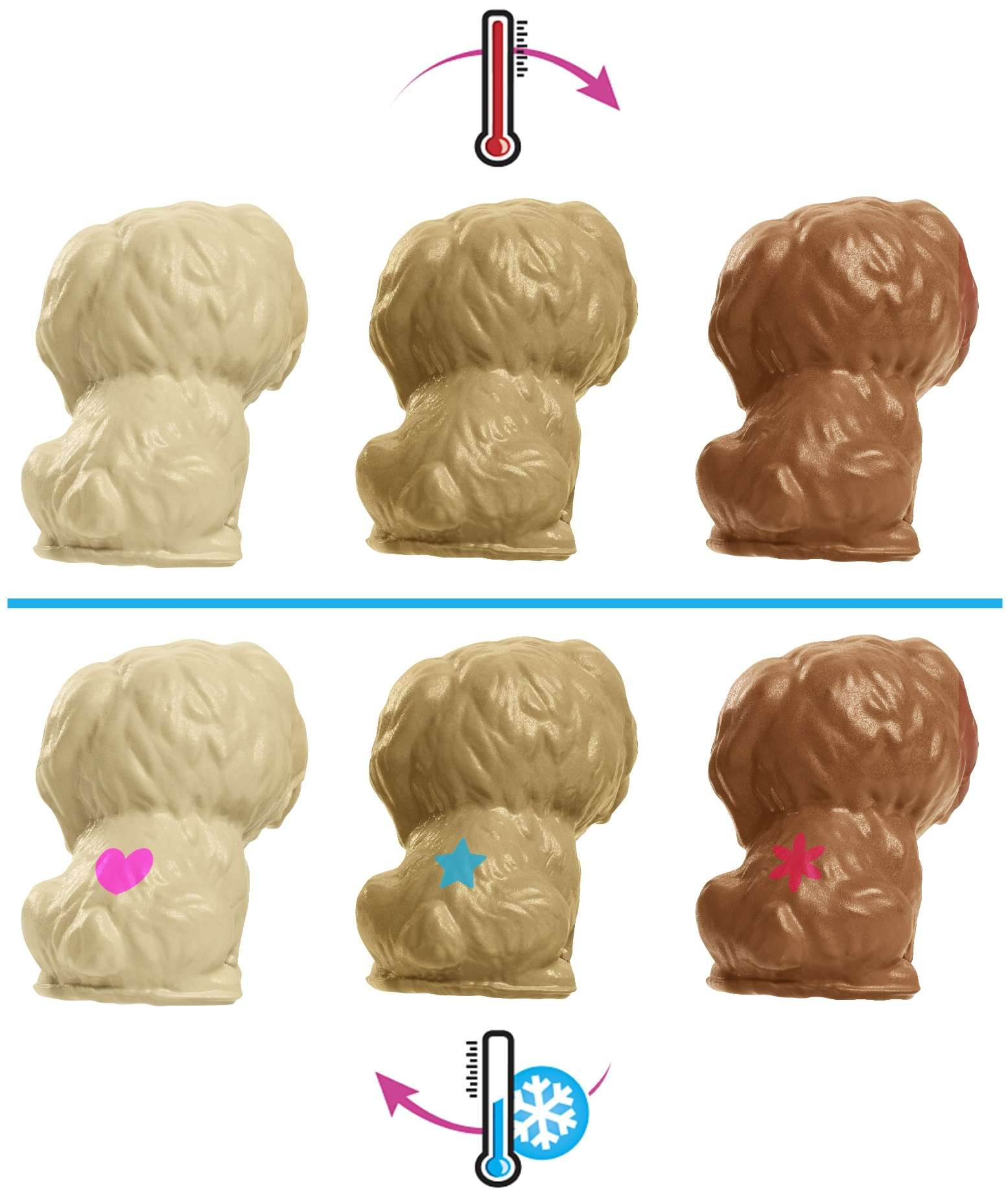 - Mit diesem Set kann das Kind der Puppe bei der Geburt der Hündchen helfen. Jeder Welpe hat ein Detail, das beim Eintauchen ins Wasser zum Vorschein kommen kann. Das Set kommt mit einer Puppe und Zubehör zum Spielen.