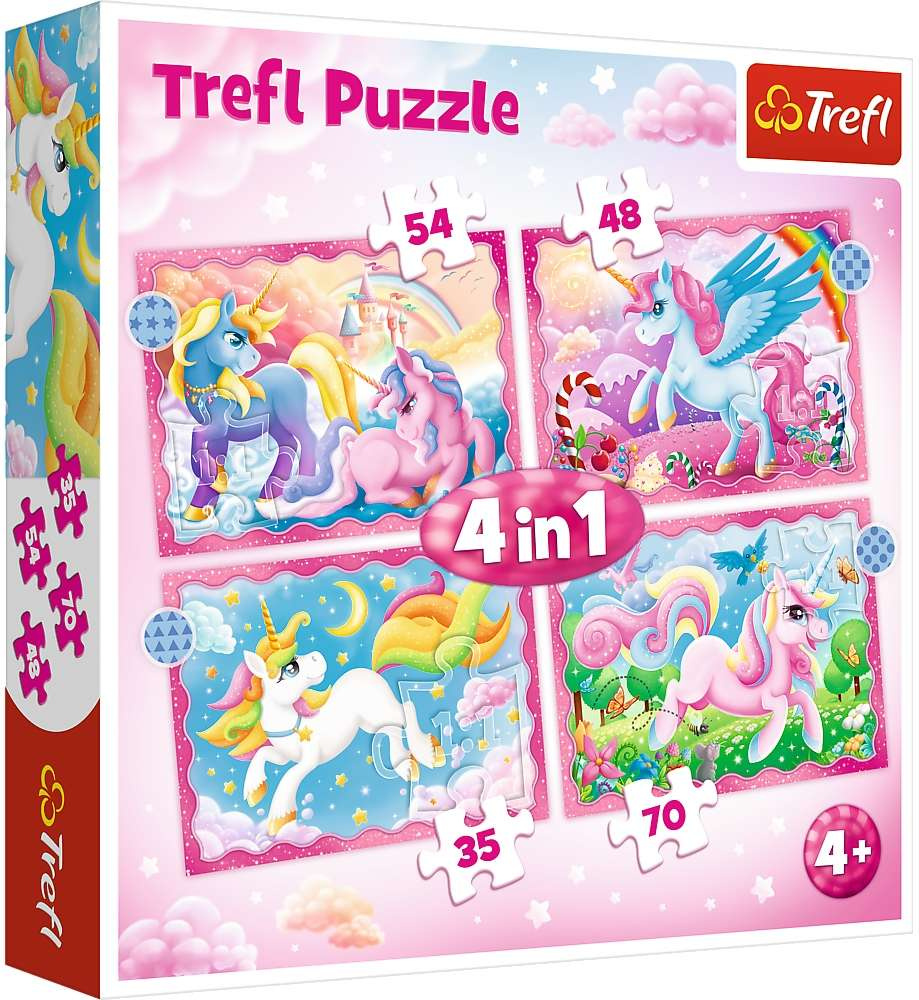 - Das Puzzle-Set Einhörner und Magie besteht aus 4 separaten Bildern mit unterschiedlicher Anzahl von Elementen. Sie zeigen bezaubernde Einhörner. Jedes zusammengesetzte Bild misst 28,5 x 20,5 cm. Inhalt: 4 Rätsel (35 el.,48 el.,54 el.,70 el.)