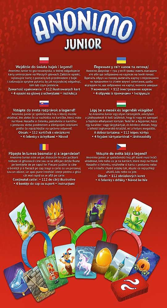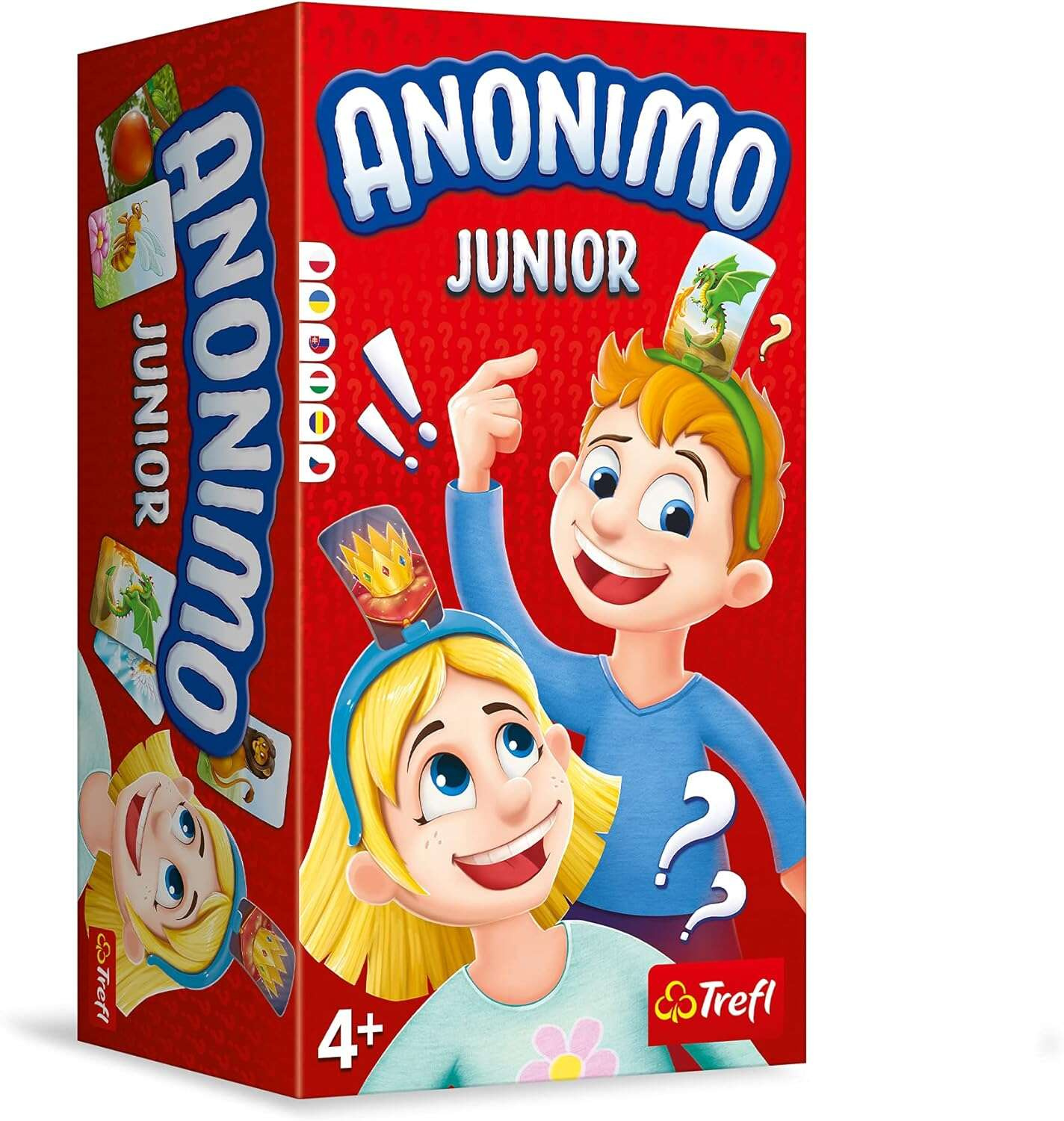 - Anonimo Junior ist ein Familienspiel für die kleinsten Spieler. Jeder Spieler setzt sich eine Charakterarmbinde auf den Kopf und versucht zu erraten, wer er ist, indem er den anderen Spielern Fragen stellt.