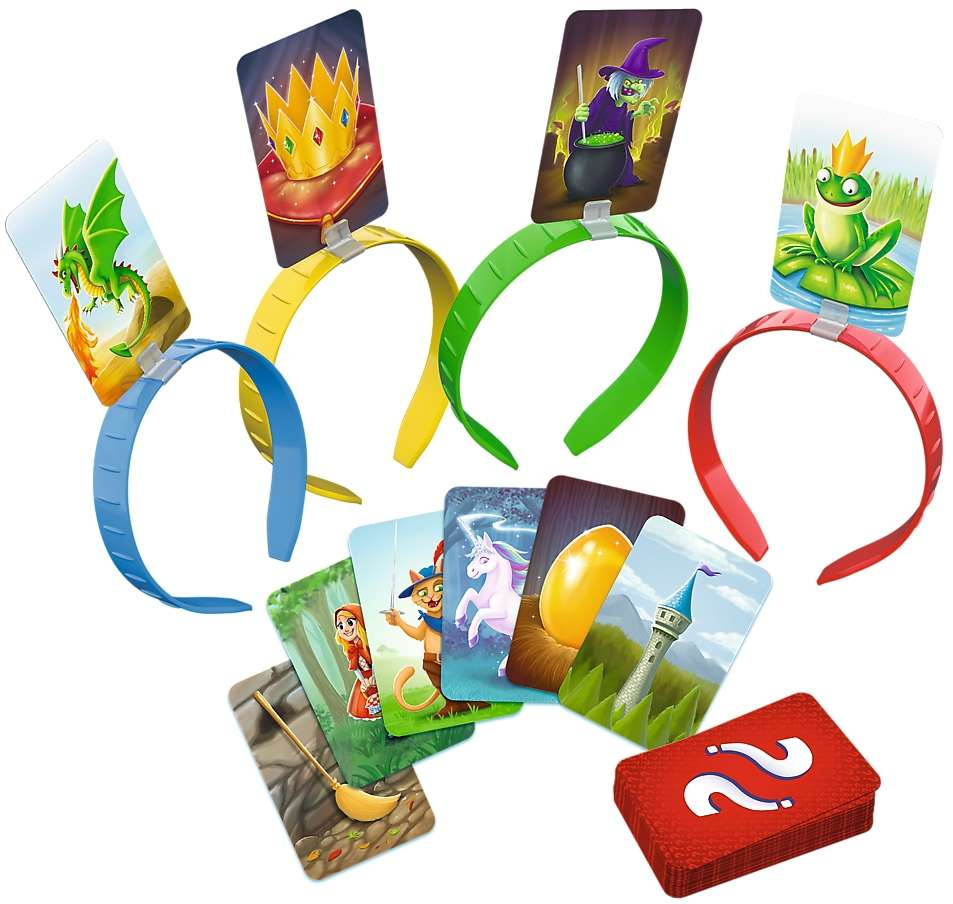 Anonimo Junior ist ein Familienspiel für kleine Kinder spieler. Jeder Spieler setzt sich eine Charakterarmbinde auf den Kopf und versucht zu erraten, wer er ist, indem er den anderen Spielern Fragen stellt.