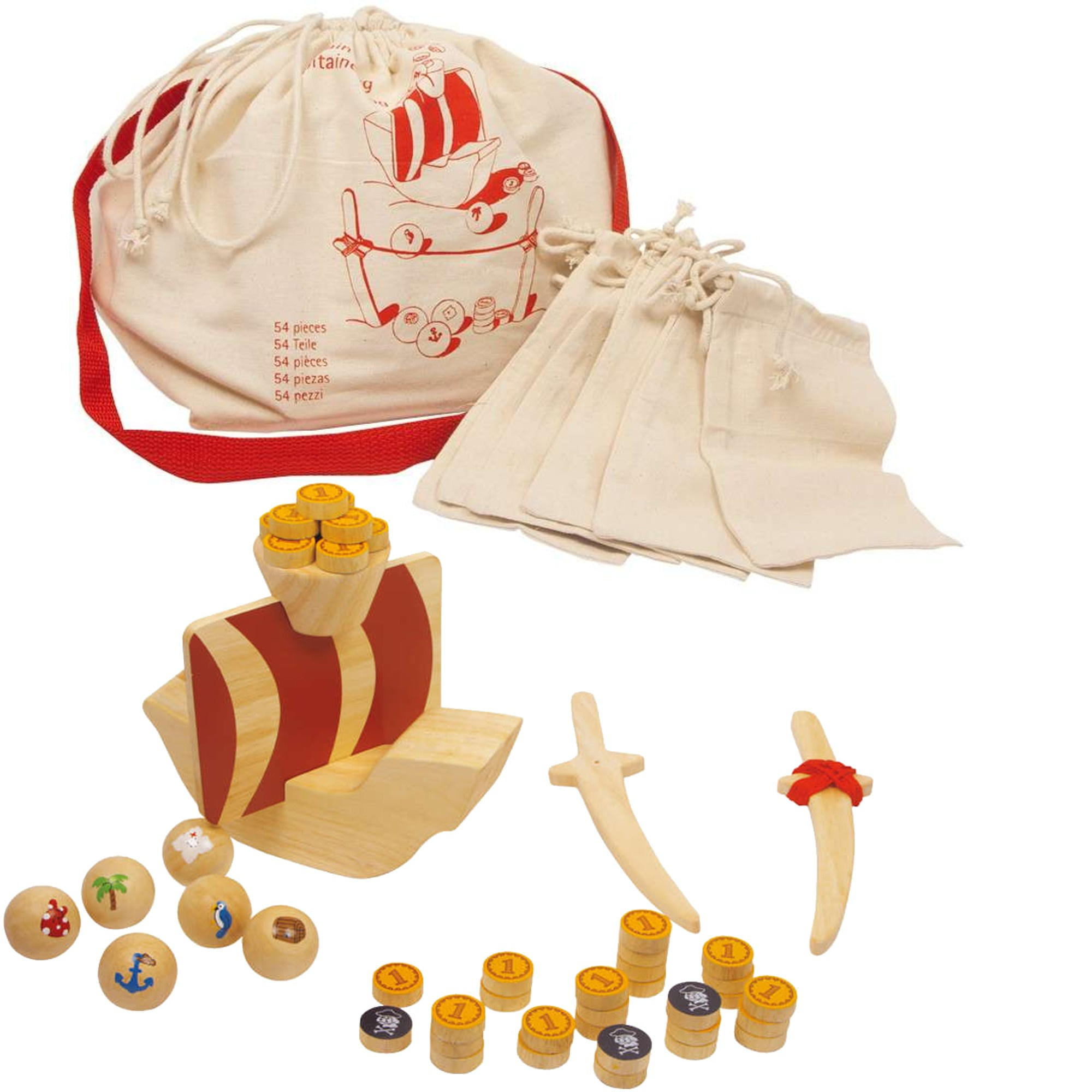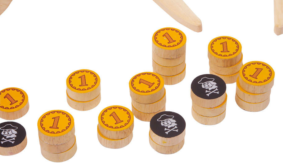 Das Piratenschiff sollte 4 Meter vom Seil entfernt sein. Die Spieler platzieren Goldmünzen auf dem Krähennest und werfen dann abwechselnd Bälle, um sie zu treffen und auf dem!