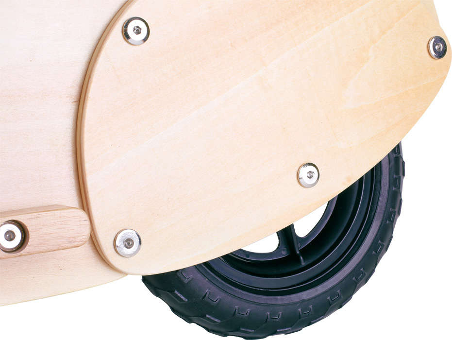 Das Fahrrad wurde aus hochwertigem Holz nach dem Vorbild italienischer Motorroller aus den 1950er Jahren gefertigt. Es ist äußerst robust und mit vielen Funktionen ausgestattet: