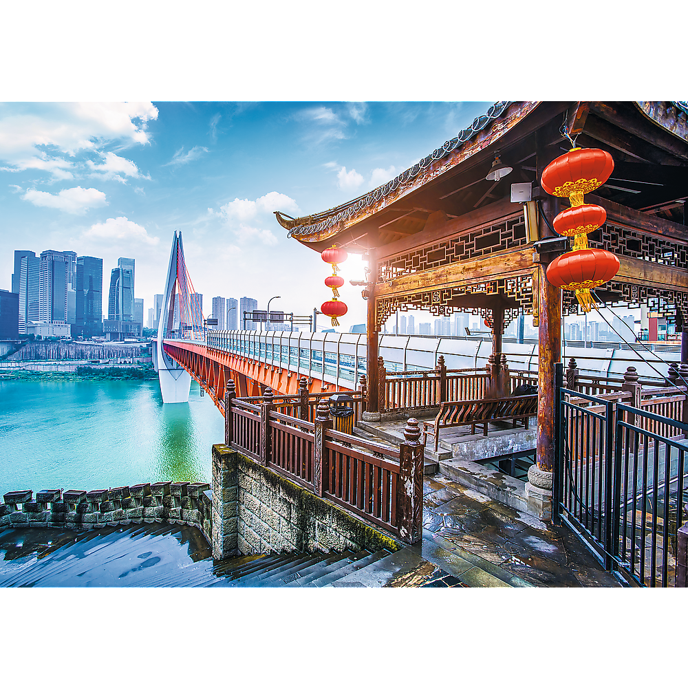 Das Puzzleset besteht aus 1000 Teile und ermöglicht die Anordnung von ein äußerst farbenfrohes Bild mit der Darstellung von Chongqing, China.