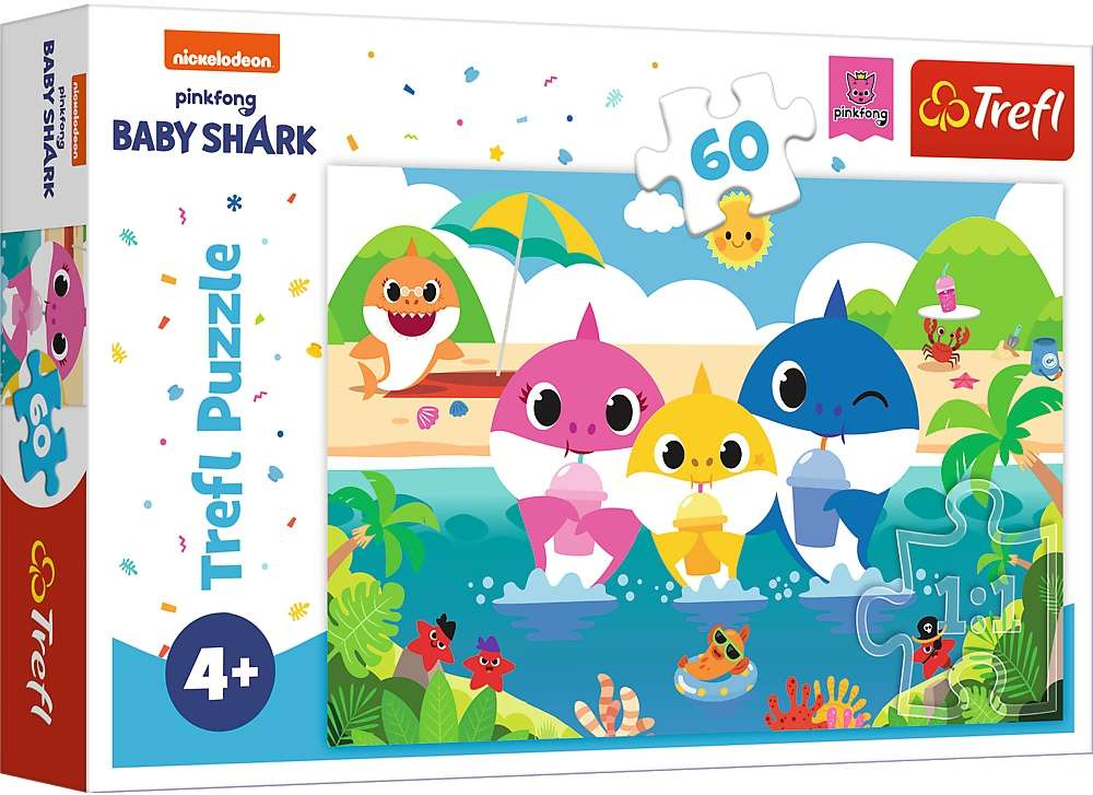 - Das Puzzleset besteht aus 60 Teilen und ermöglicht es, ein äußerst farbenfrohes Bild der Baby-Hai-Familie im Urlaub zusammenzusetzen. Das zusammengesetzte Bild misst 33 x 22 cm.