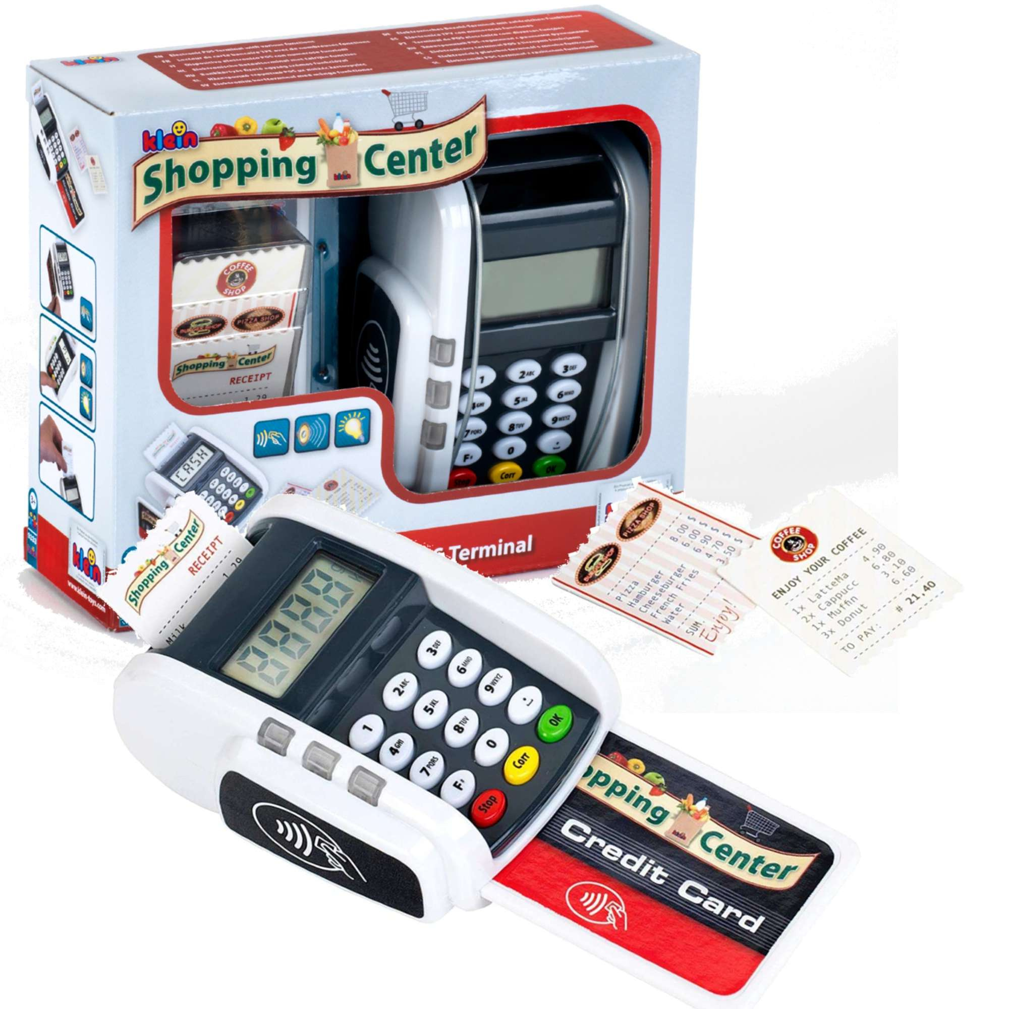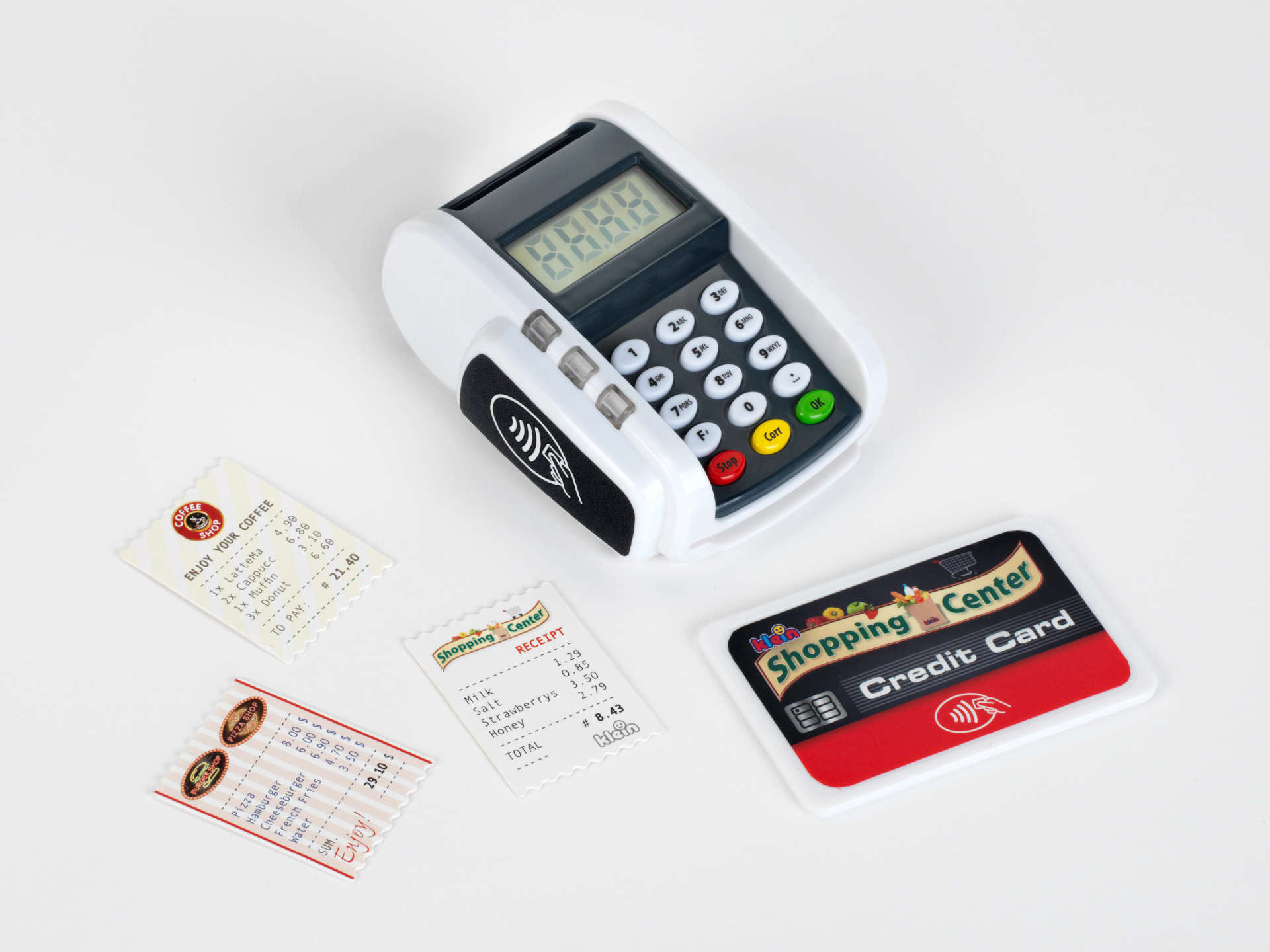 Spielzeug-Zahlungsterminal mit Karten und Belegen