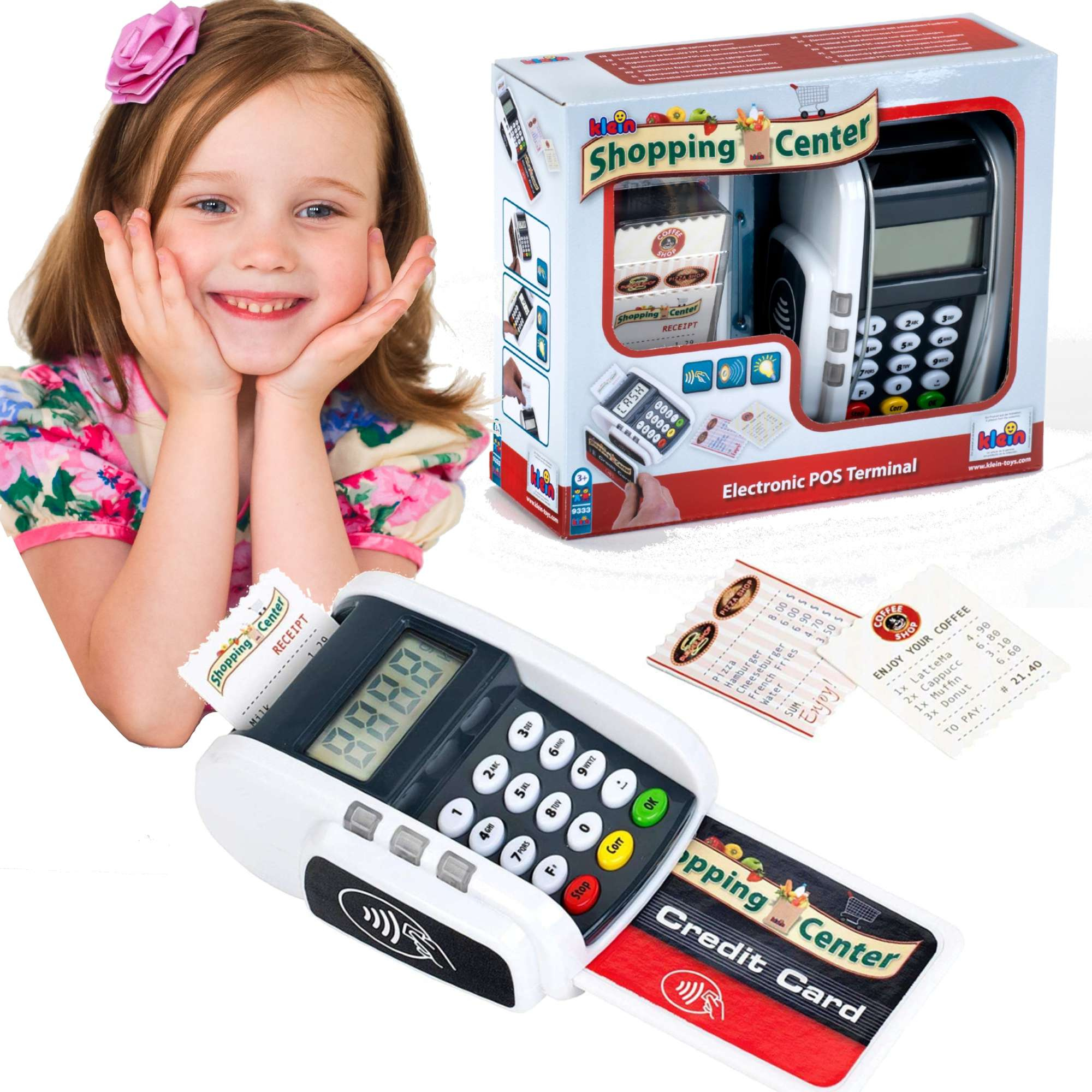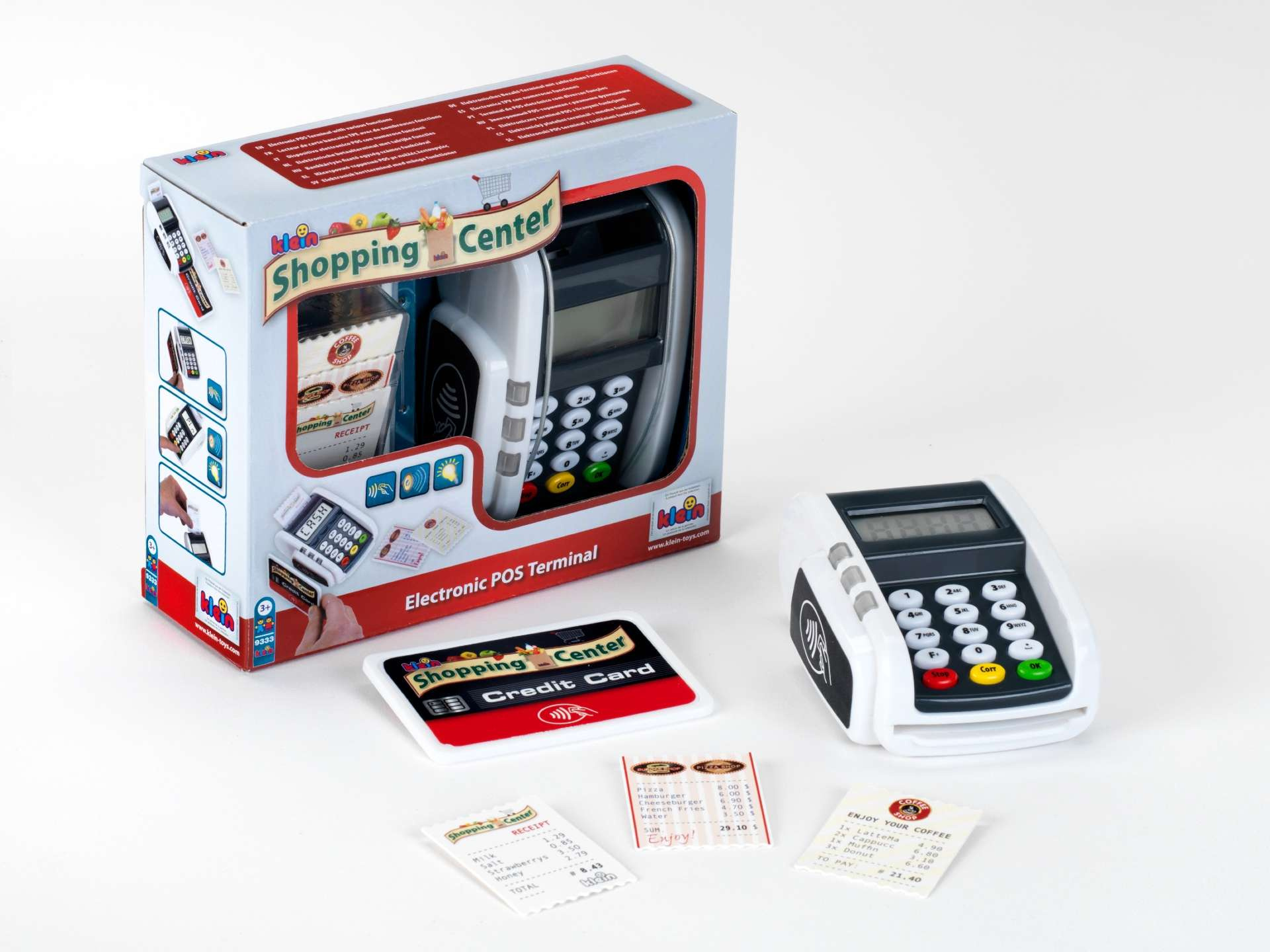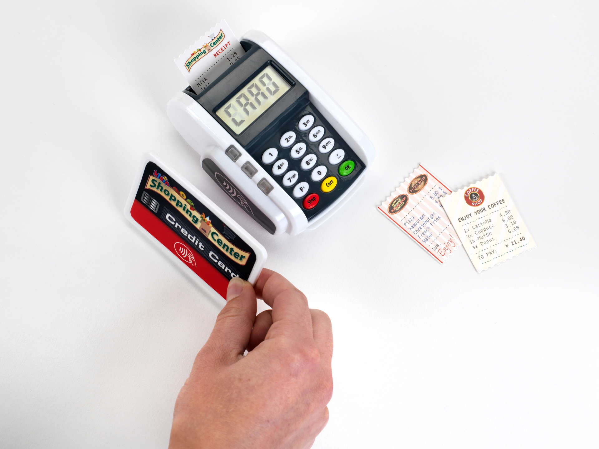 Spielzeug-Zahlungsterminal mit Karten und Quittungen für Spielwarengeschäfte