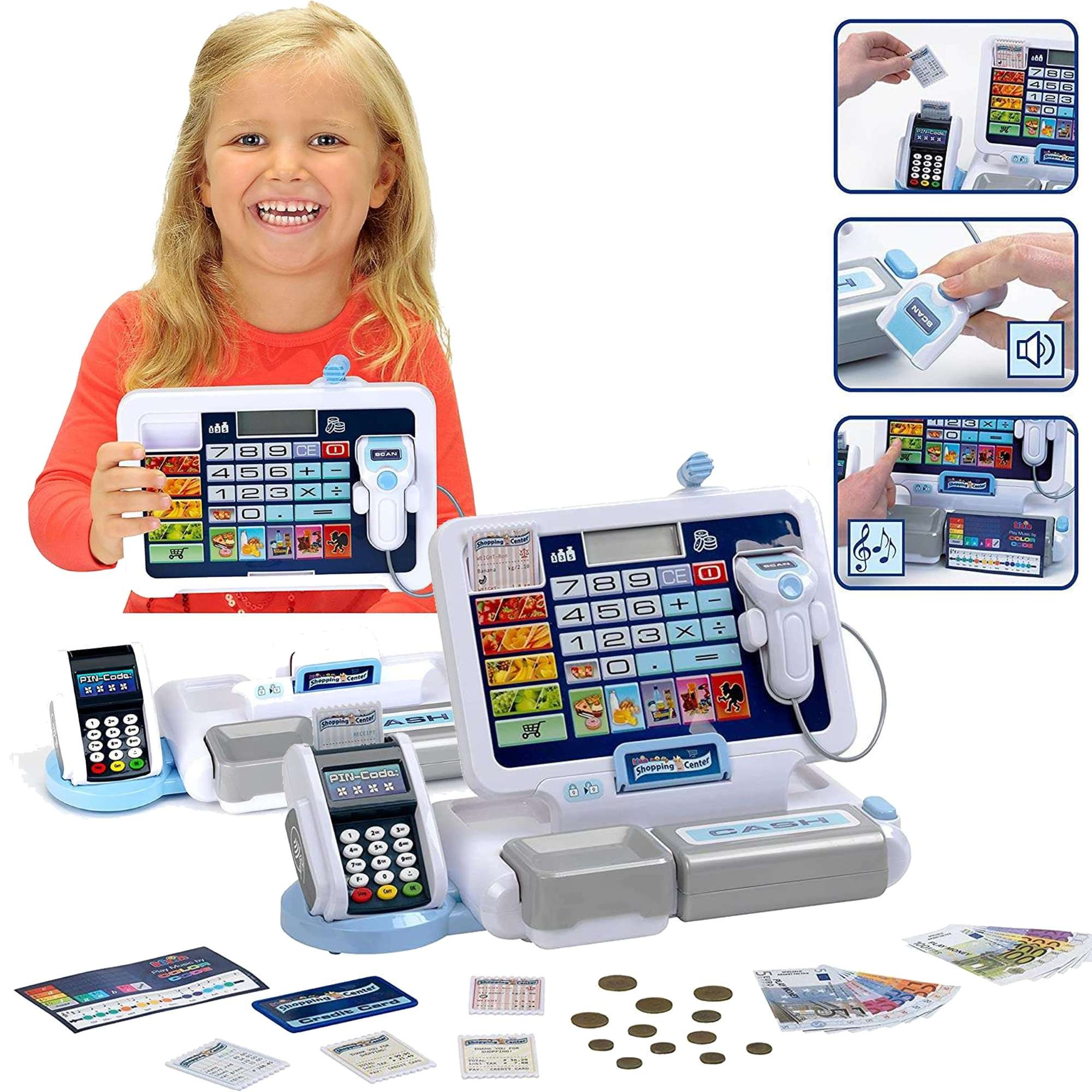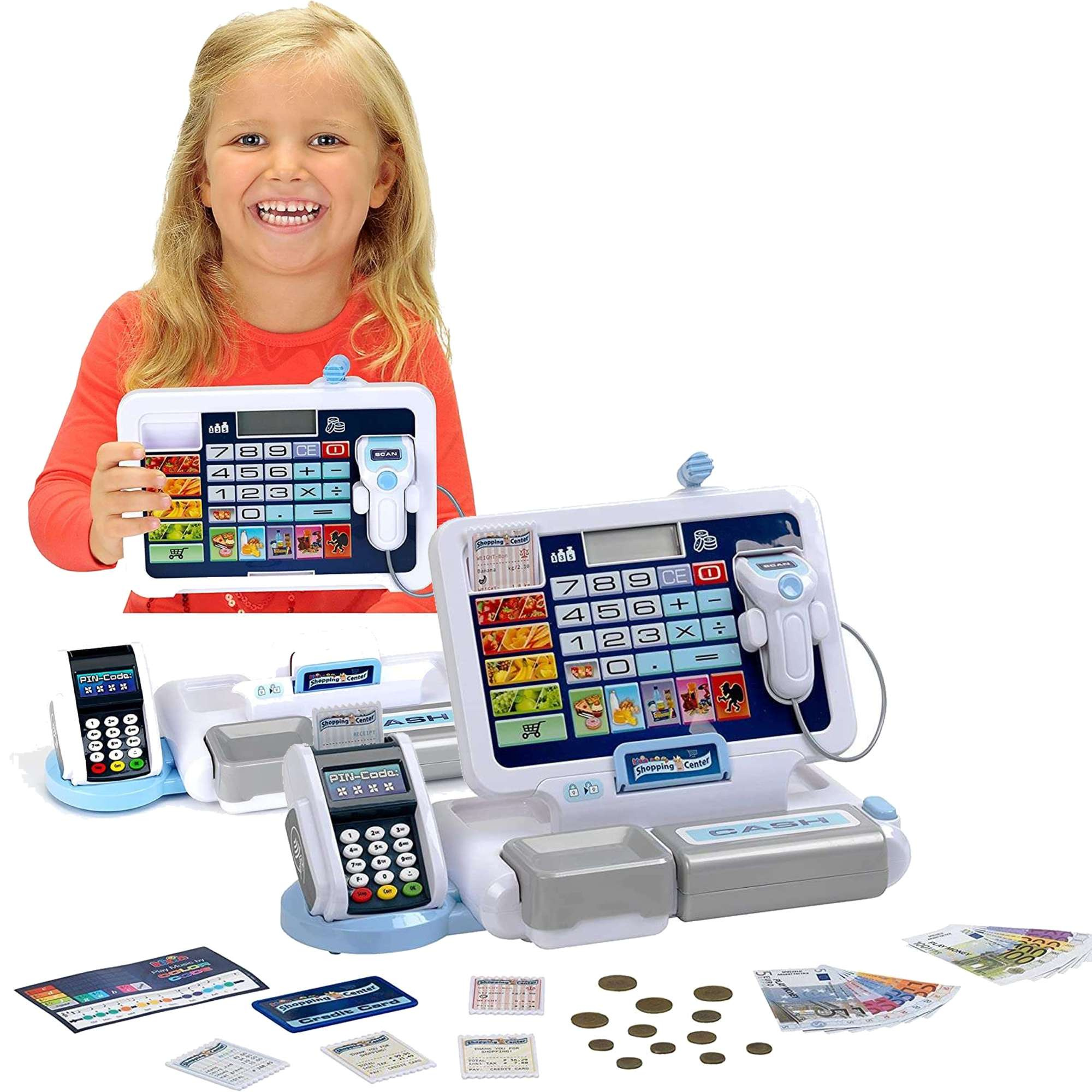 Die elektronische Registrierkasse mit Zahlungsterminal ist ein perfektes Spielzeug für jedes Kind, das gerne auf dem Markt spielt.