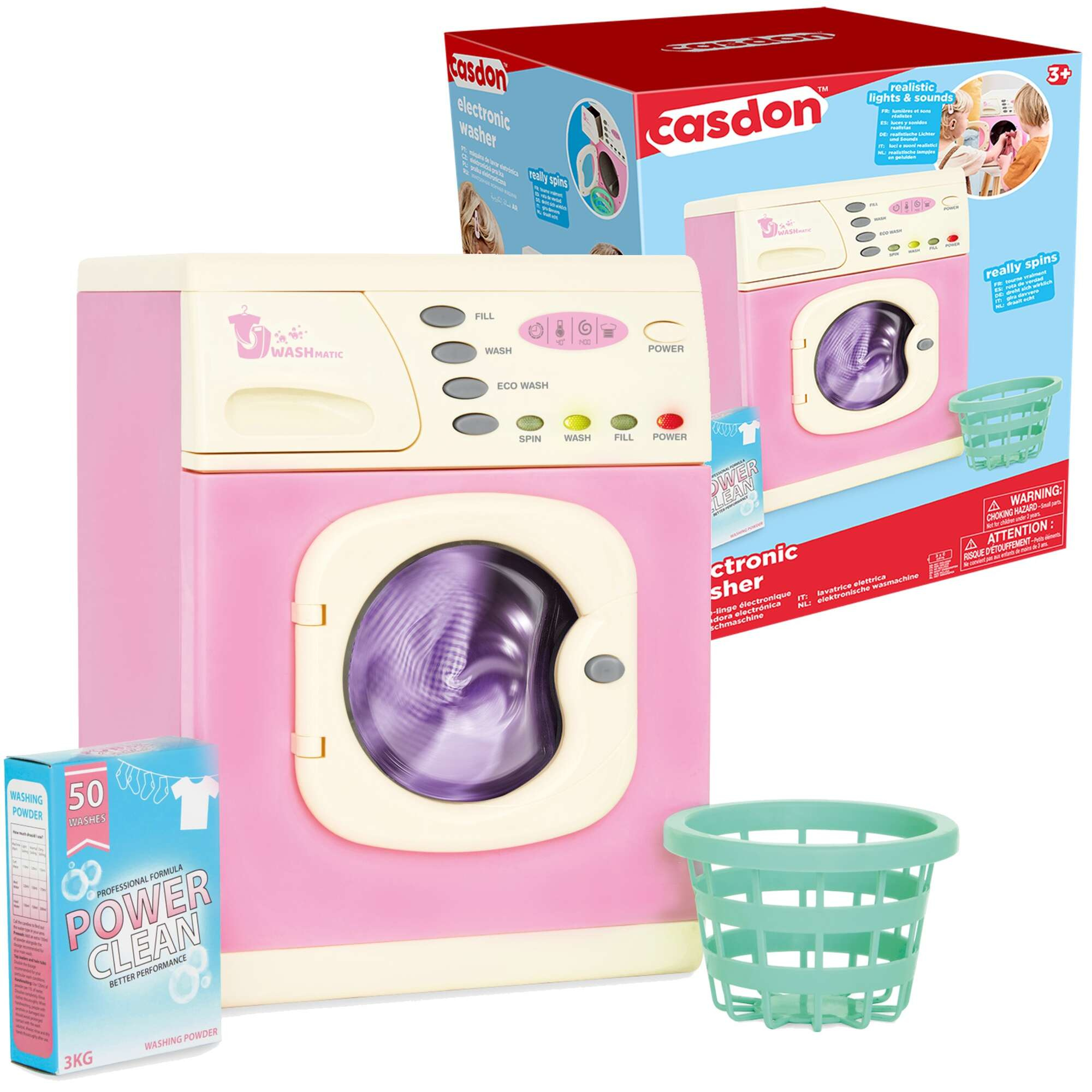 Casdon Elektronische Spielzeug-Waschmaschine Rosa für Kinder Licht-, Toneffekte