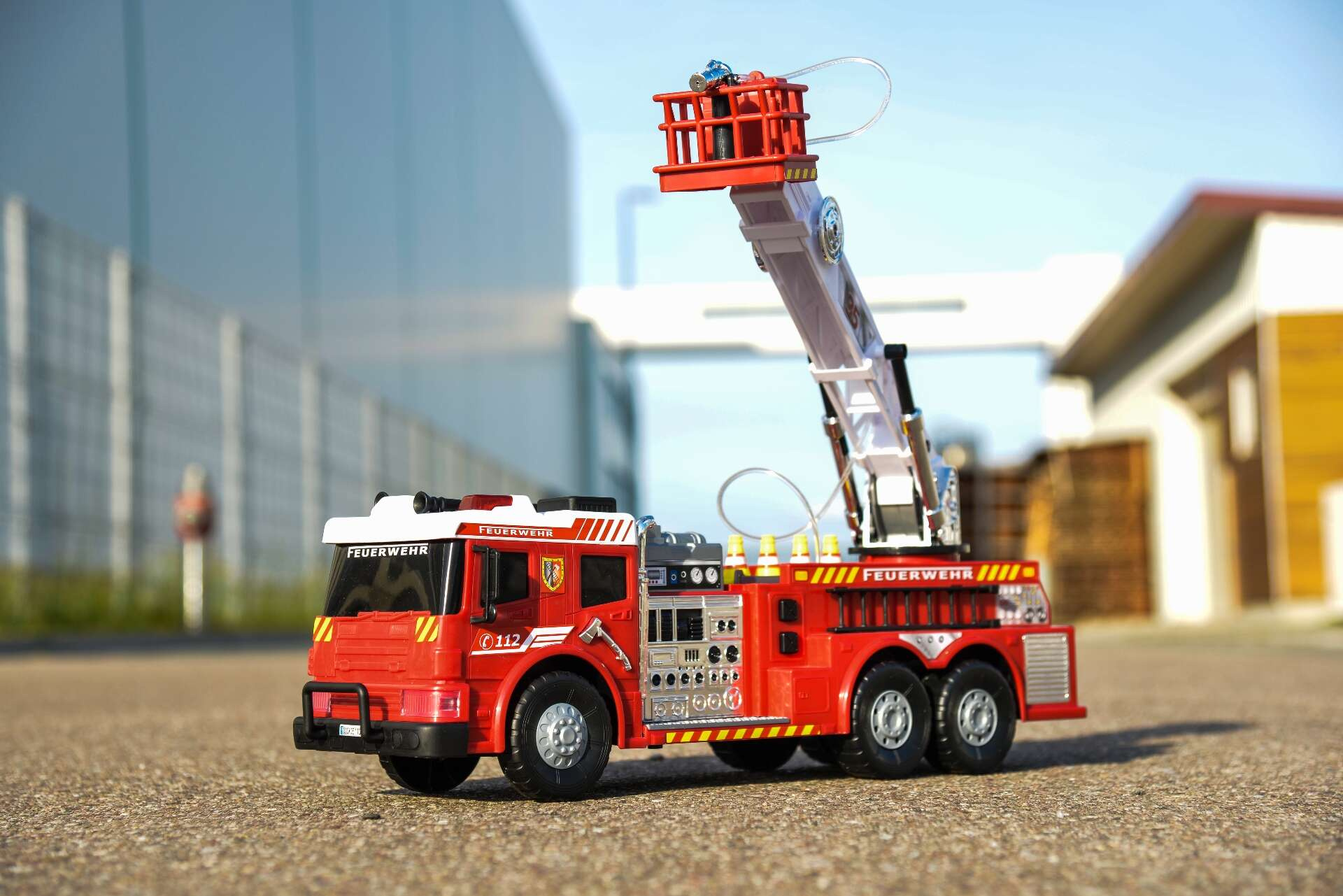 Das Feuerwehrauto hat eine ausklappbare Leiter mit einem funktionierenden Wassersprinkler. Außerdem ist es mit realistischen Geräusch- und Lichteffekten ausgestattet. Es wurde mit viel Liebe zum Detail hergestellt, weshalb es einem echten Feuerwehrauto täuschend ähnlich ist.