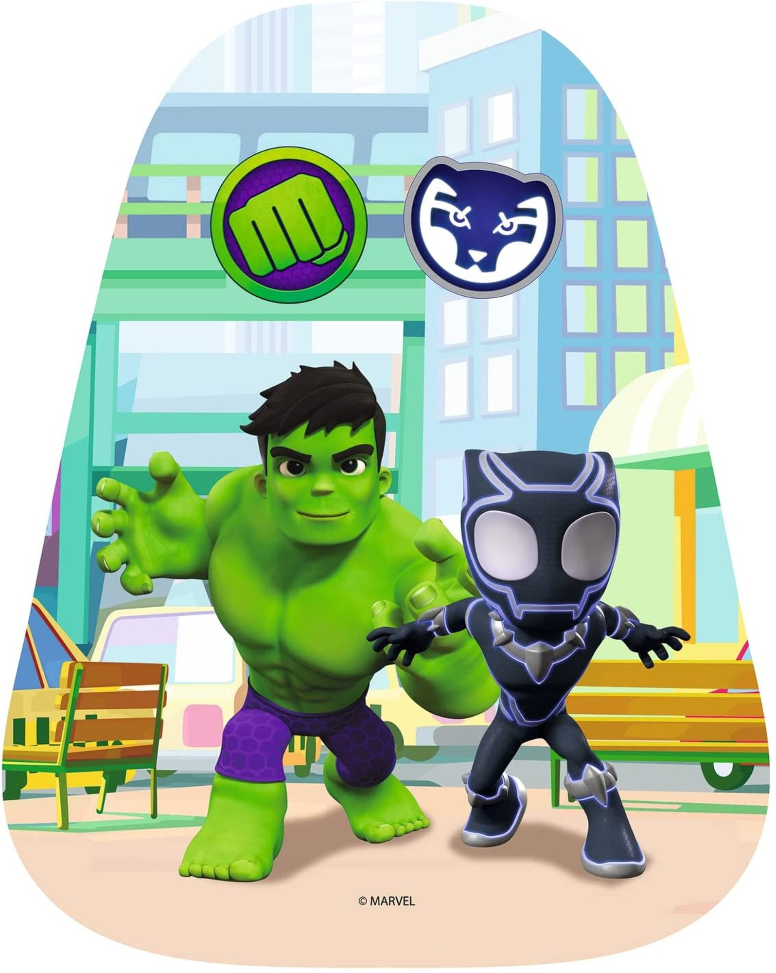 - Das Zelt ist mehrfarbig. Die Seiten sind mit farbenfrohen Grafiken von Marvel-Filmfiguren verziert, m. in. Spiderman, Hulk und Black Panther.