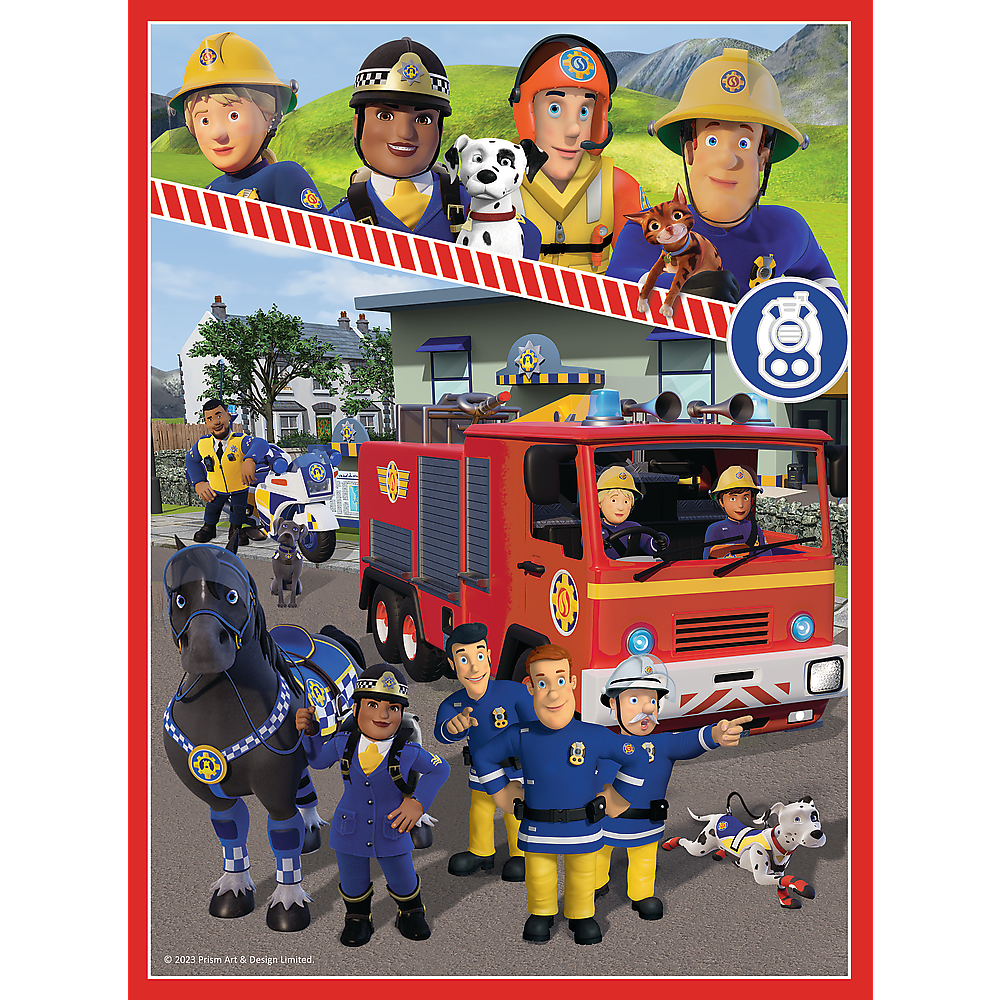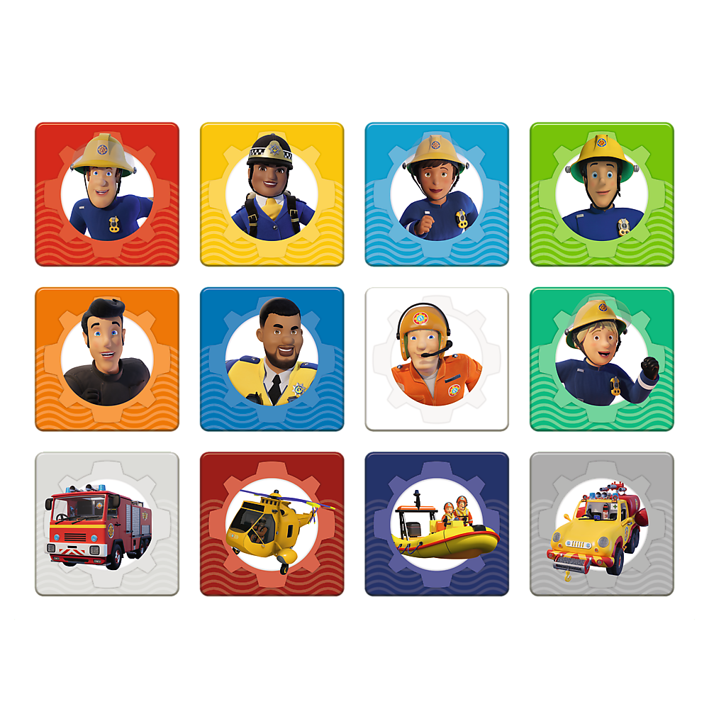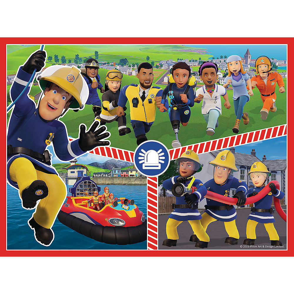 - Das Team Fireman Sam Set besteht aus 2 Puzzles: 30 Teile und 48 Teile und einem Memo-Memory-Spiel. Die Bilder zeigen die Titelfigur und ihre Freunde. Die Abmessungen der beiden Bilder sind: 27,5 x 20,5 cm.