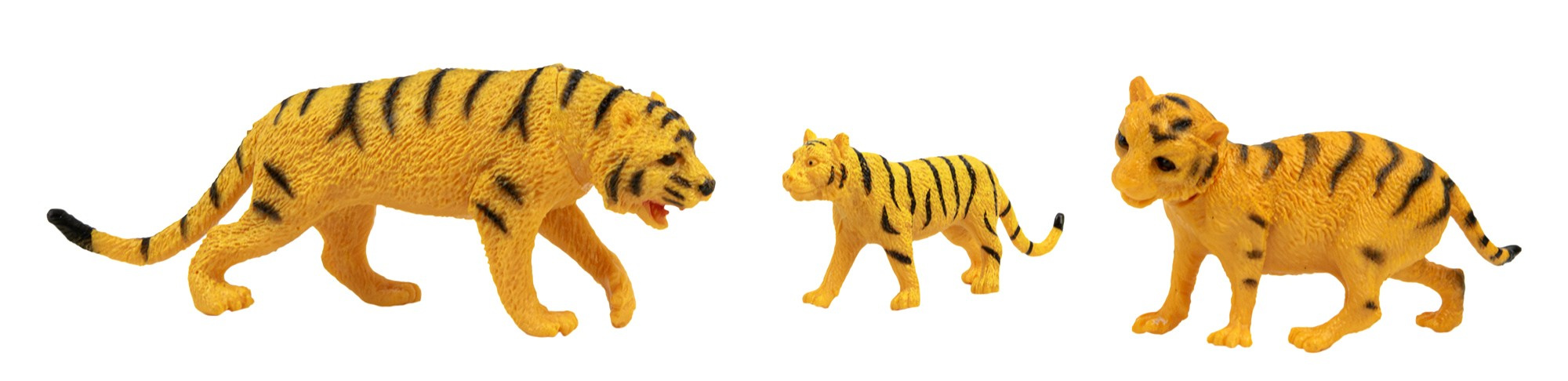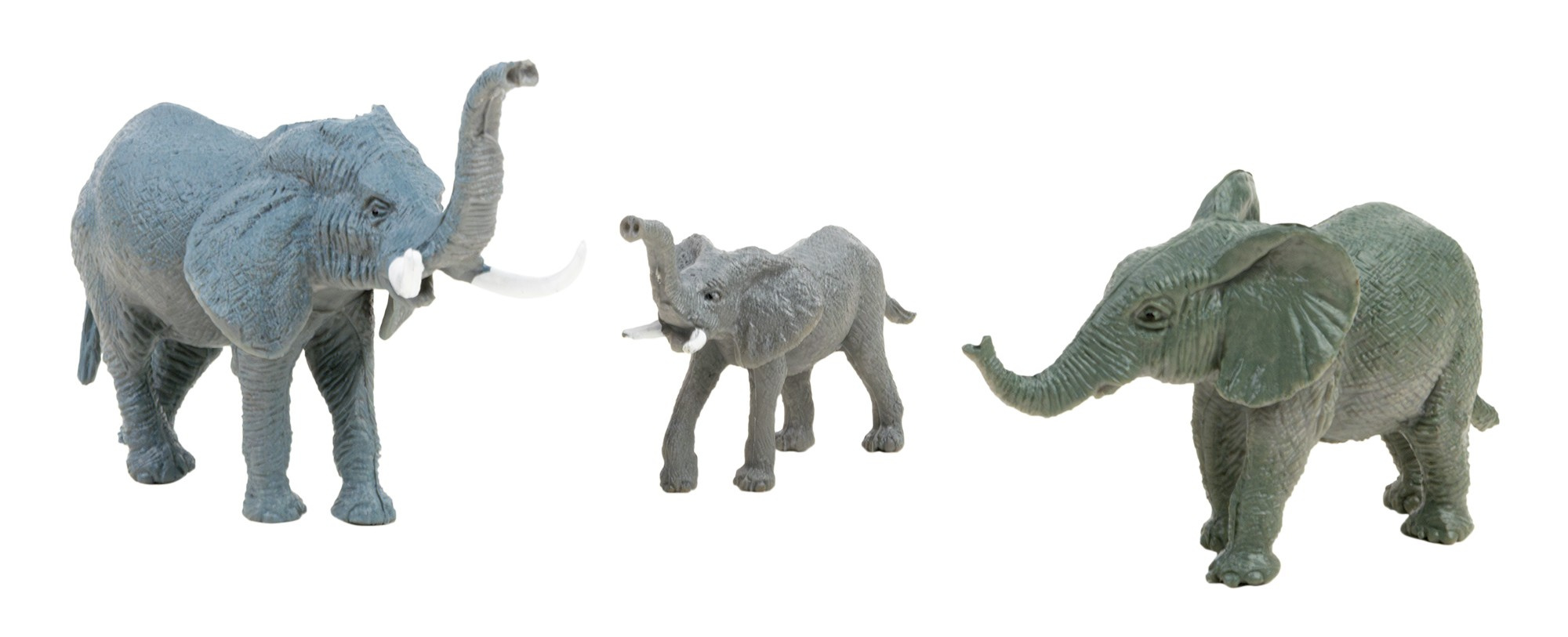 Die Tiere und das Zubehör sind in verschiedenen Größen erhältlich, so dass sie die Rollen von Erwachsenen und ihrem Nachwuchs spielen können.