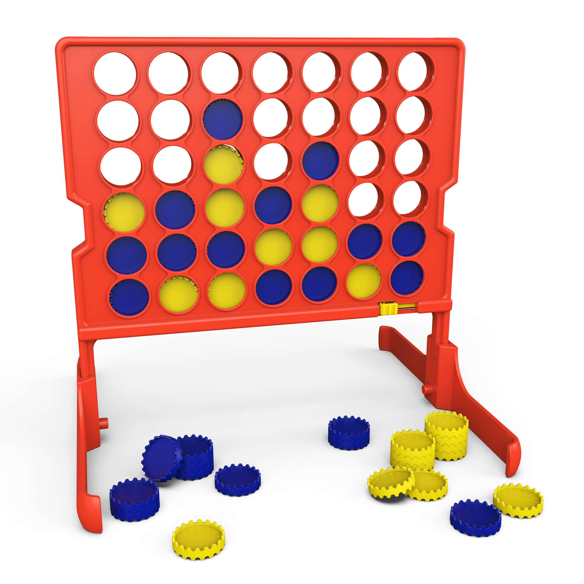 Es besteht aus einem roten vertikalen Spielbrett, 2 Beinen, 42 Spielsteinen in Gelb und Blau und einer Anleitung. In die kreisförmigen Löcher des vertikalen Spielbretts steckt jeder Spieler abwechselnd seine gelben oder blauen Plättchen. Wer zuerst 4 in einer Reihe platziert hat, gewinnt.