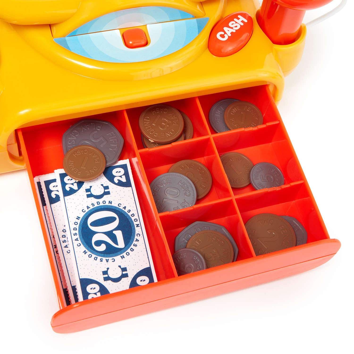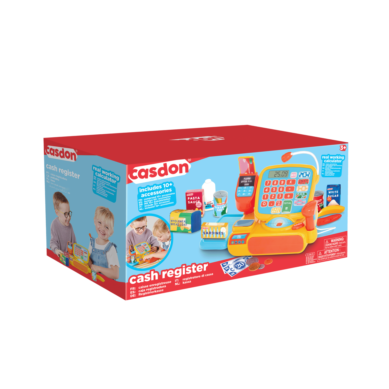 Die Registrierkasseist mit vielen Soundeffektenausgestattet. Das voll funktionsfähigeMikrofon verarbeitet die Stimme eines Kindes, das mit ihr spricht, der Scanner gibt kurze Pieptöne beim Einscannen von Produkten ab, der Kartenleser gibt einen Ton von sich, wenn eine Karte eingesteckt wird. All diese Soundeffekte machen das Spielen mit der Casdon Registrierkasse für Kinder noch realistischer und lustiger.