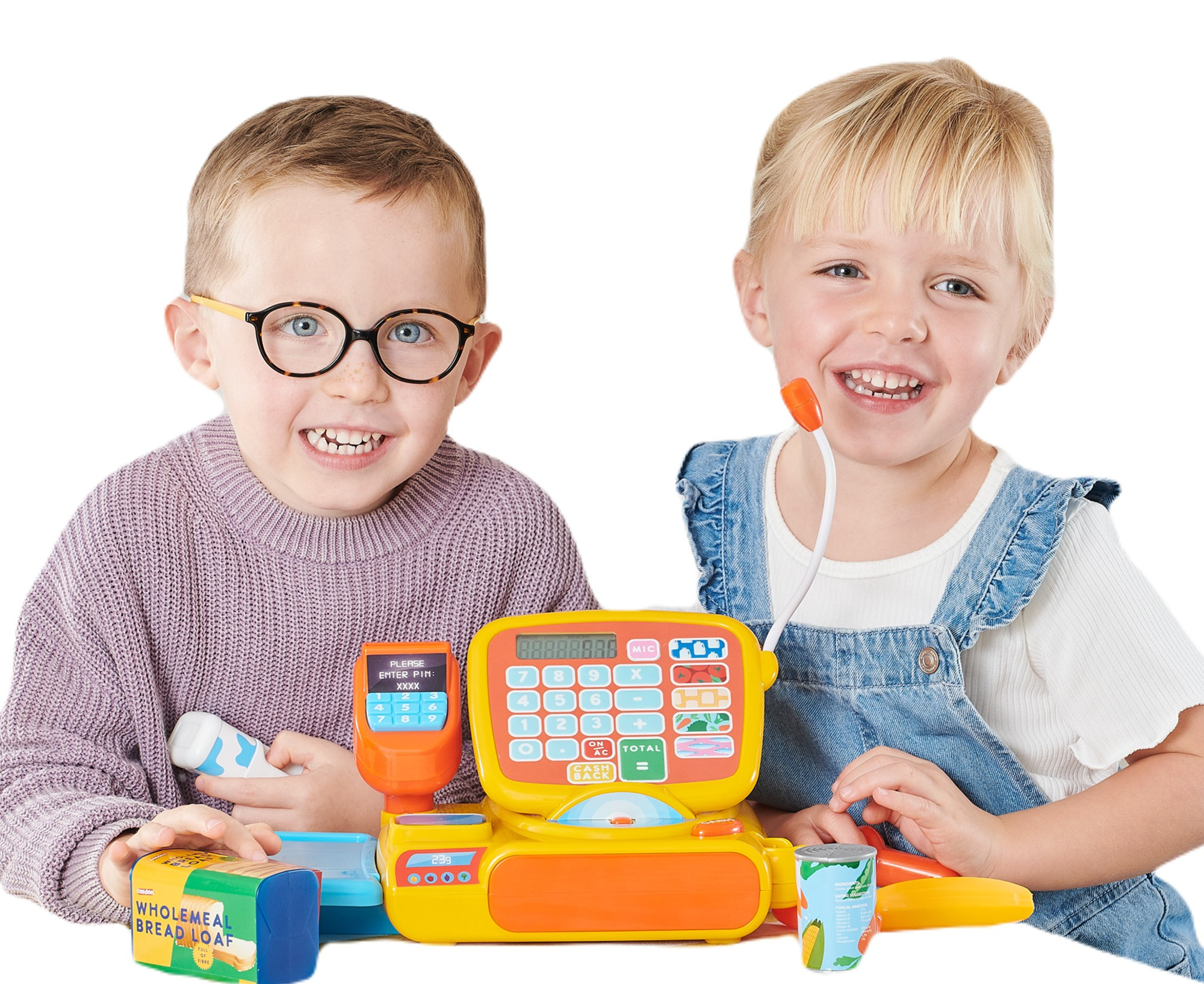 Dieelektronische Registrierkasse mit Scanner ist das perfekte Spielzeug für jedes Kind, das gerne einkaufen geht.