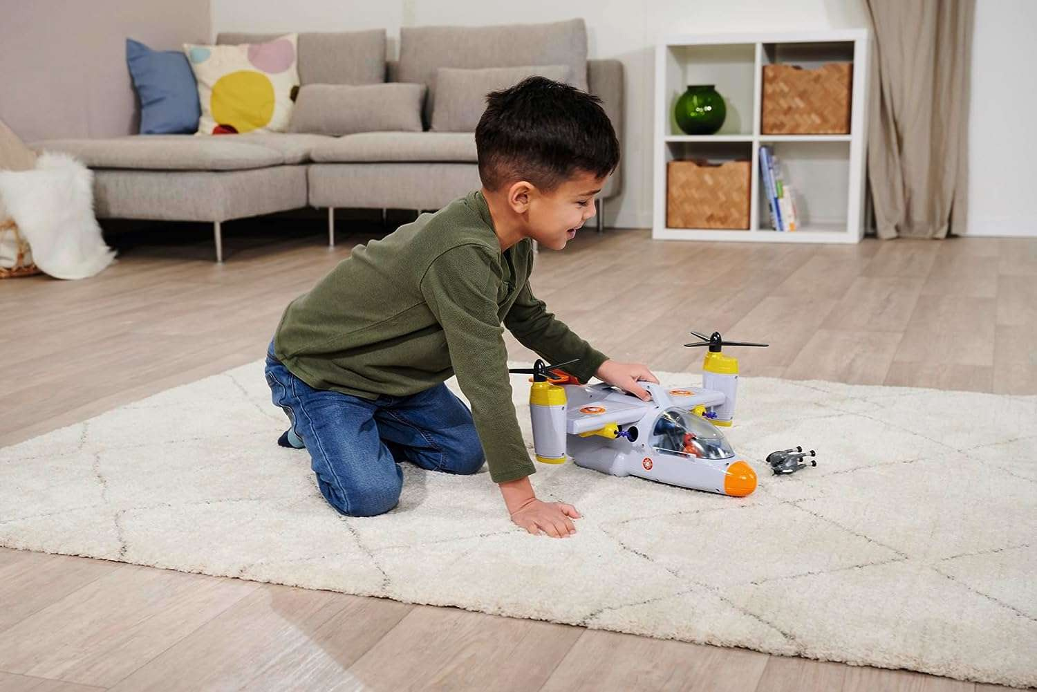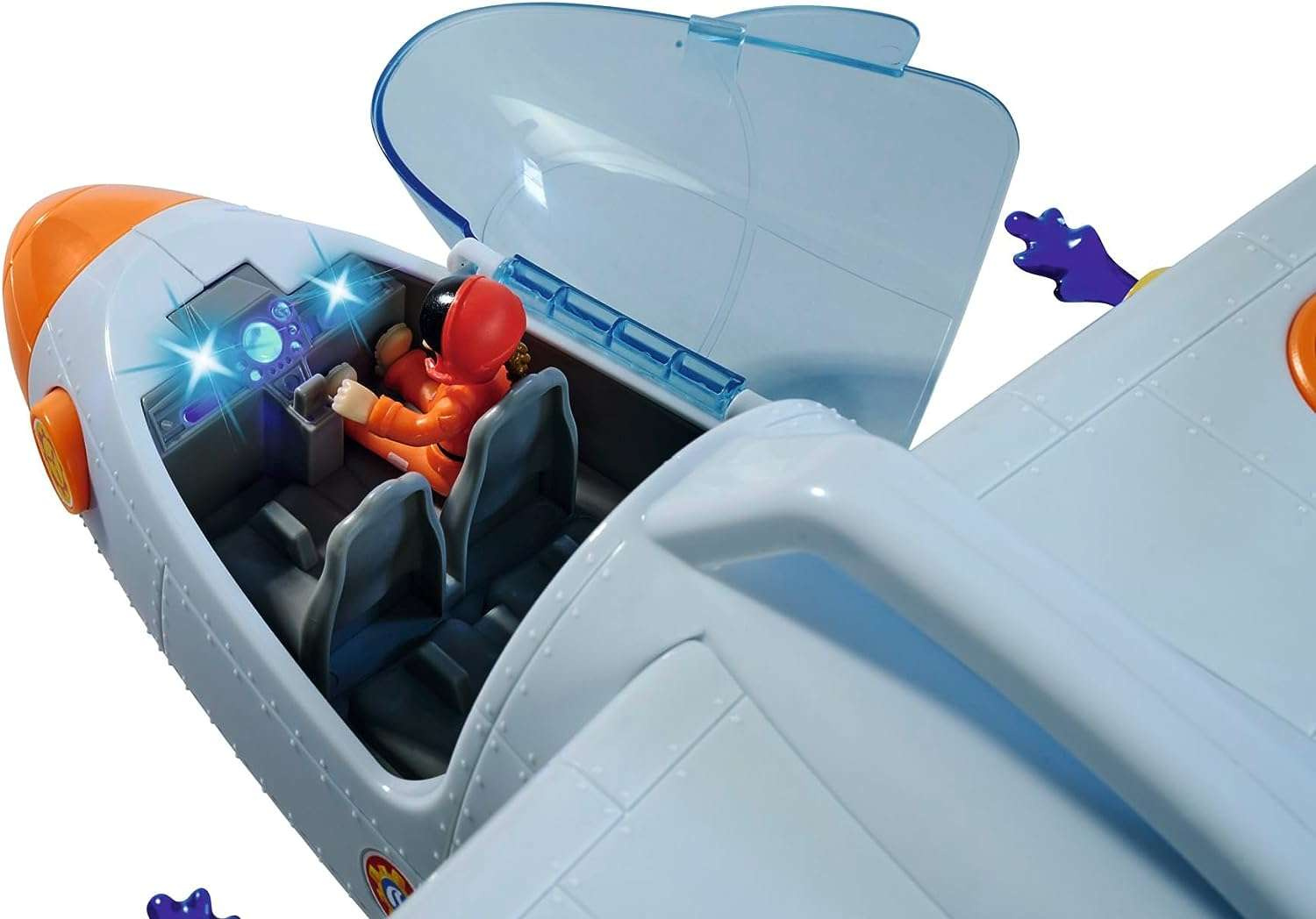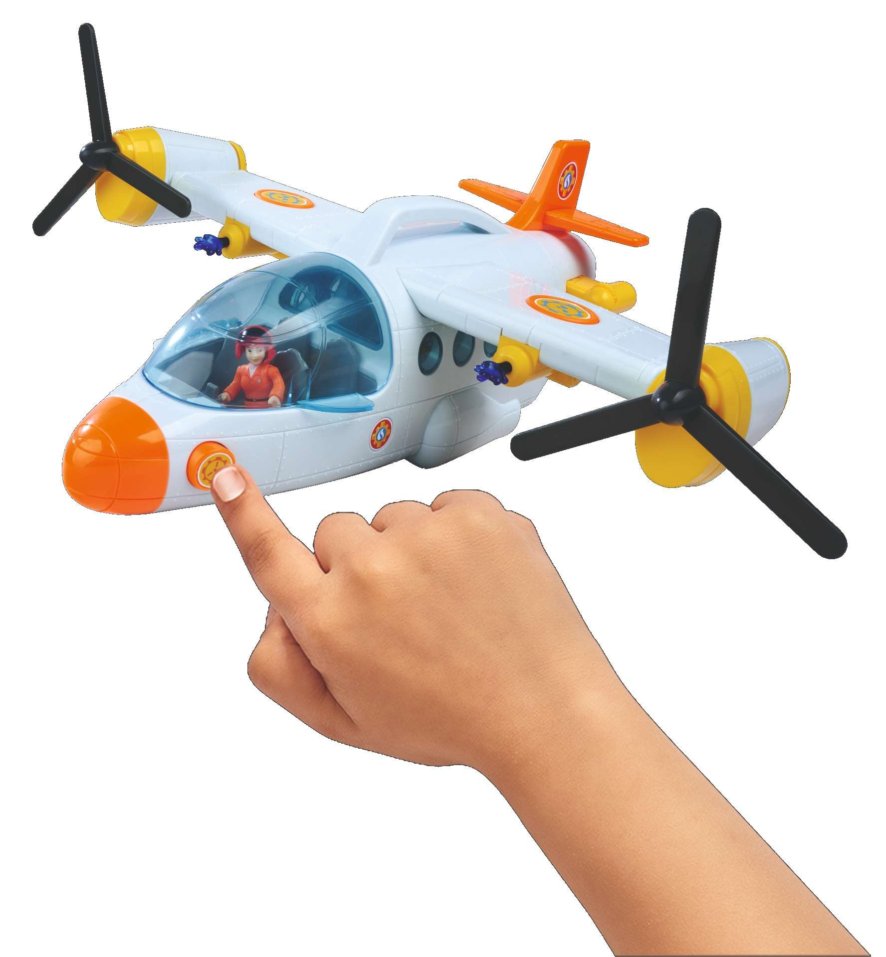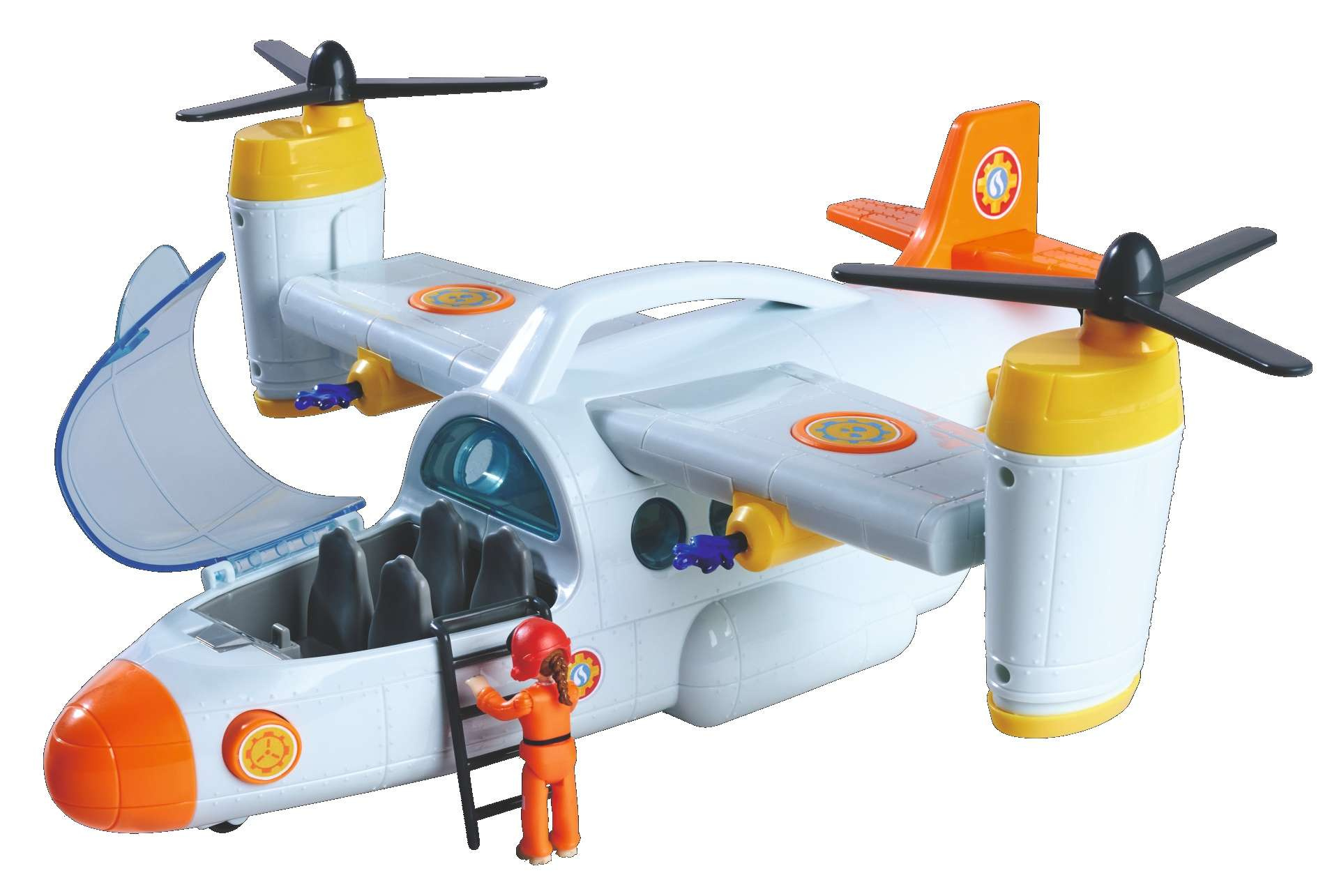 Das Set enthält ein tolles Flugzeug, das dem neuesten Fahrzeug aus der Serie nachempfunden ist, eine Figur, ein Pferd und Zubehör. Das Rettungsflugzeug von Feuerwehrmann Sam hat einen Tragegriff und Räder für eine perfekte Landung. Die beiden Rotoren an der Seite können gedreht werden. Außerdem verfügt es über eine Seilwinde. Mit Geräuschen, und das aufklappbare Cockpit bietet Platz für vier Personen. Der Einstieg wird durch eine schwarze Leiter erleichtert. Am Heck befindet sich ein zu öffnender Laderaum, in dem das Mercury Quad (nicht im Lieferumfang enthalten) untergebracht werden kann. An den Tragflächen sind zwei Wasserkanonen angebracht, die auf Knopfdruck Wassergeschosse abfeuern.