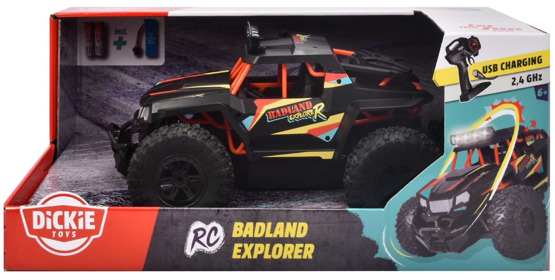 - Der AC Badland Explorer ist ein farbenfrohes, geländegängiges Fahrzeug mit dynamischer Federung für unwegsames Gelände. Es hat 4 große Gummireifen, die für die nötige Traktion sorgen, um das Spielzeugfahrzeug auf Kurs zu halten.