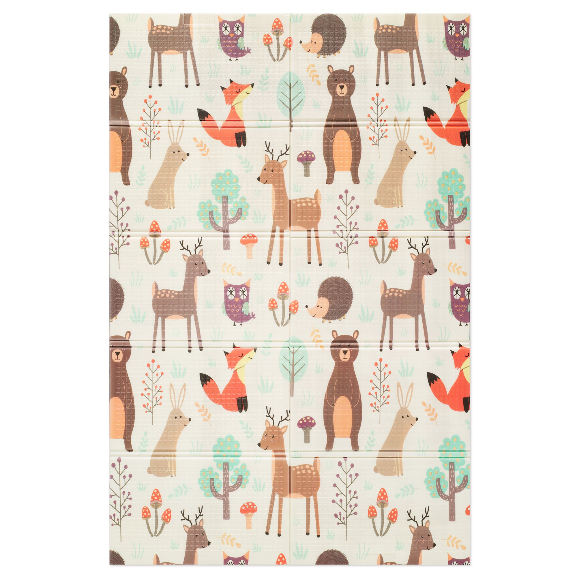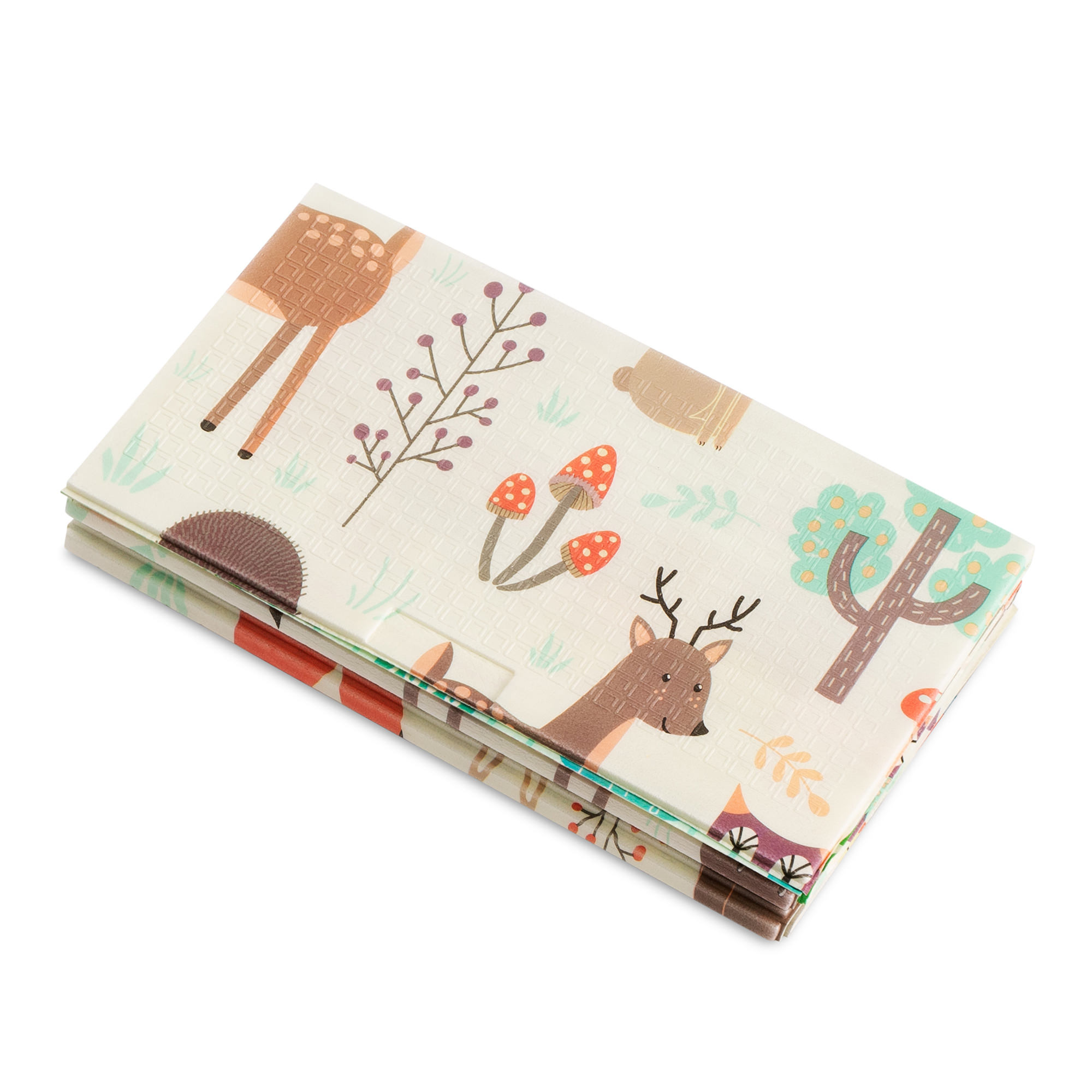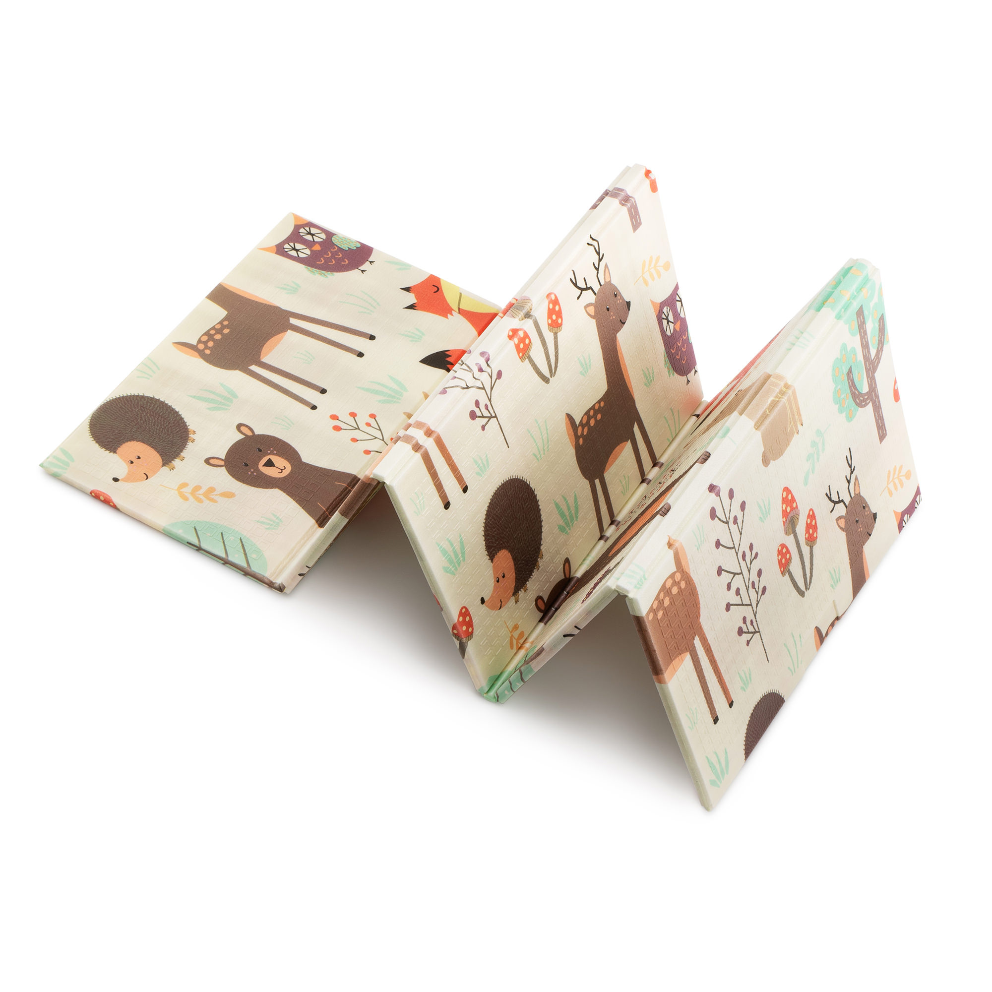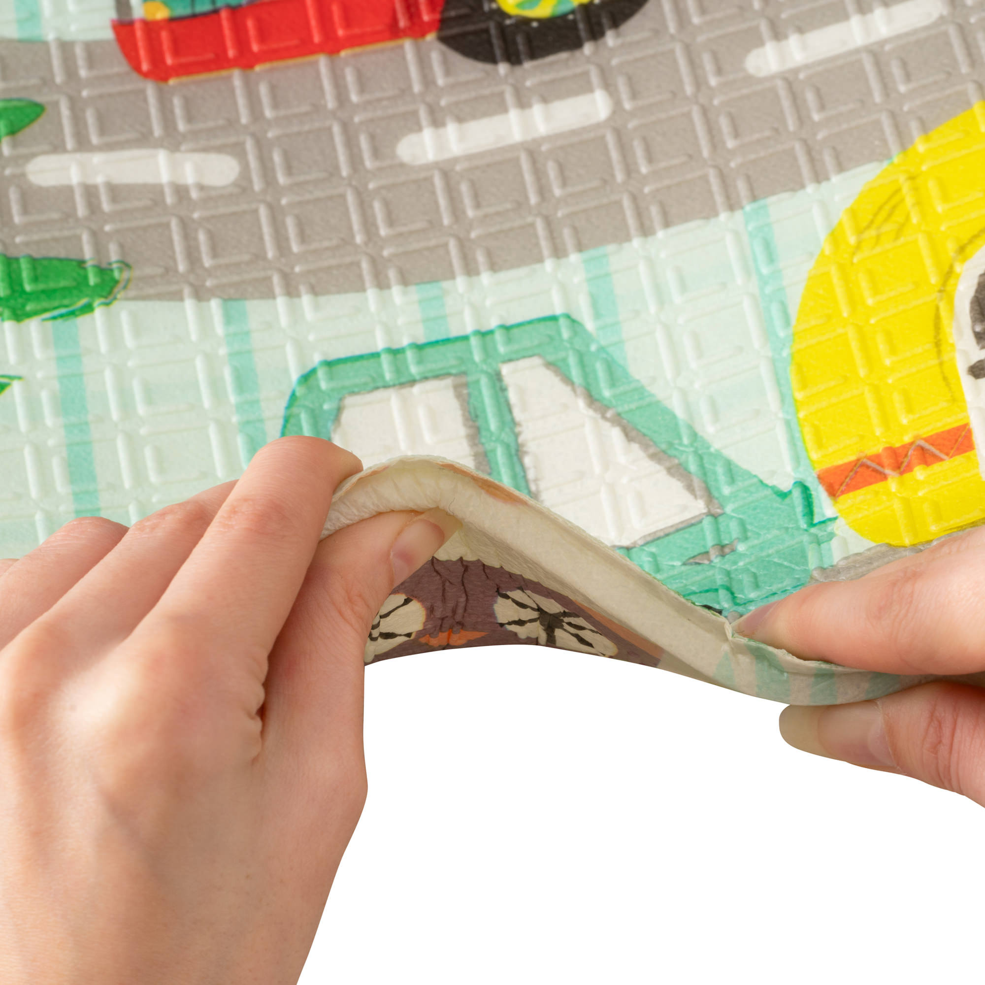 - Die Matte ist beidseitig bedruckt mit Bildern, die für Ihr Kind interessant sind: Auf der einen Seite eine Grafik mit niedlichen Tieren im Wald, auf der anderen Seite eine Grafik mit bunten Straßen auf türkisem Hintergrund.