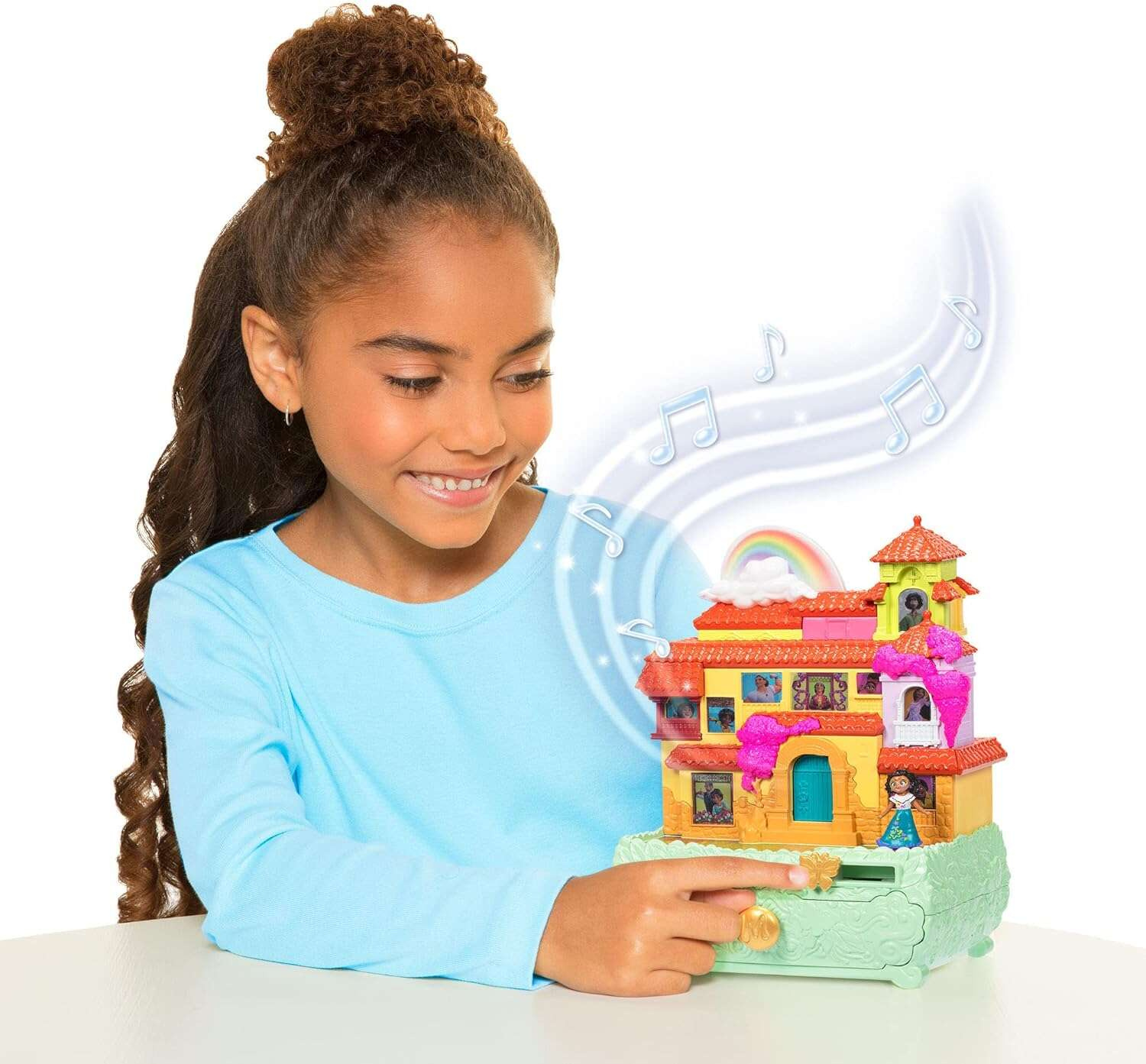 Wenn es aktiviert wird, ertönt das Lied aus dem Zeichentrickfilm "Unser magischer Encanto" , die Tür öffnet sich, Mirabel tanzt vor dem Haus und die Lichter in den Fenstern zeigen die Bewohner an.