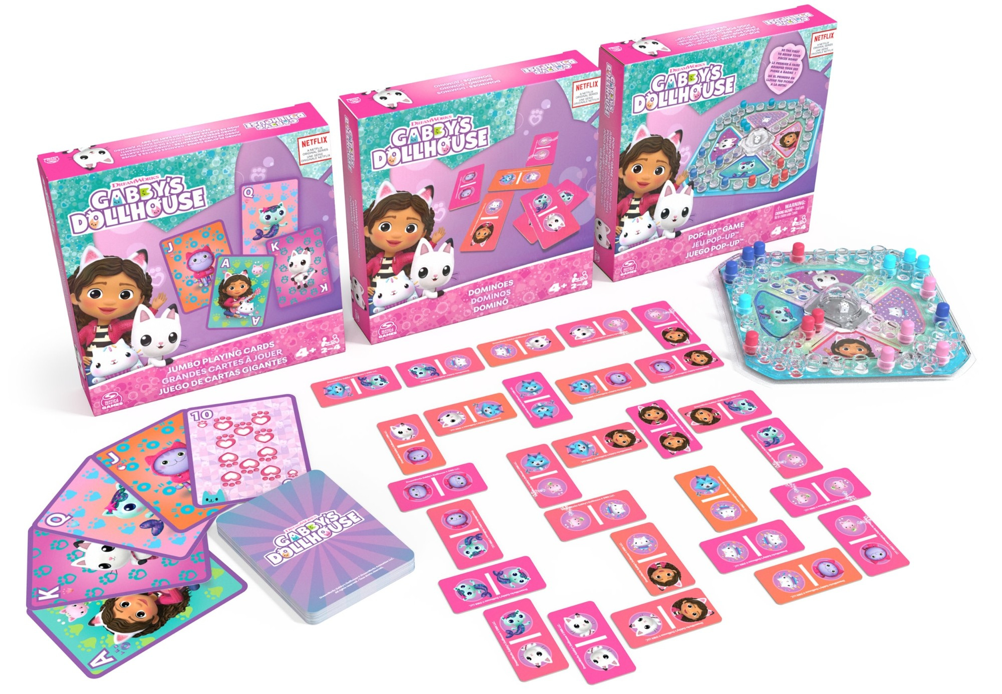 Gabi's Cat House 3-in-1-Spielset Domino Pop-Up-Würfel Jumbo-Karten