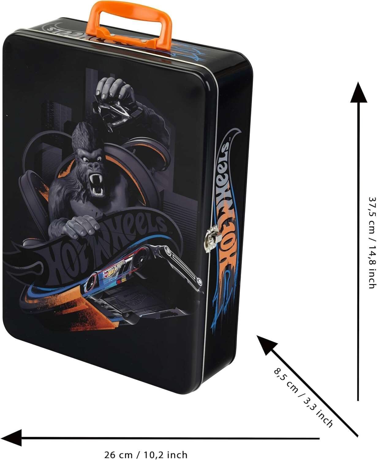• Der Autokoffer ist aus Aluminium gefertigt. Er wird in schwarz geliefert. Auf der Schrift ist ein Affe abgebildet, der ein Hot Wheels Fahrzeug angreift.
