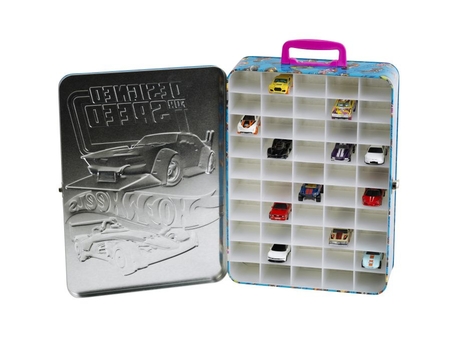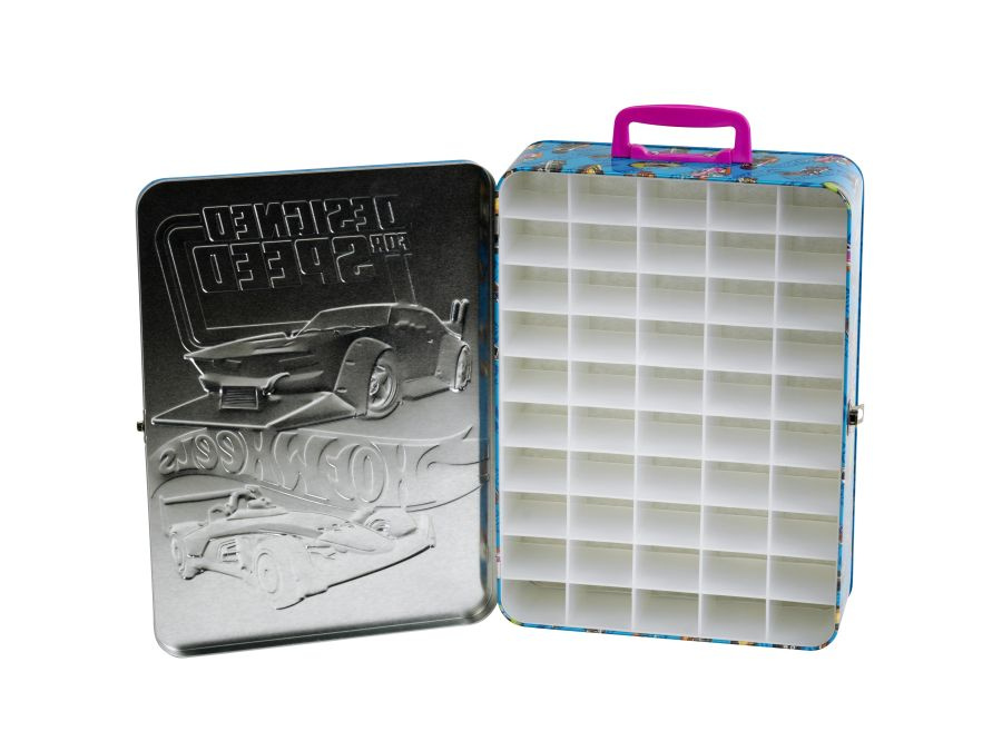 Der Koffer bietet Platz für bis zu 50 Hot Wheels-Autos, , und die Fächer lassen sich hervorragend individuell gestalten.