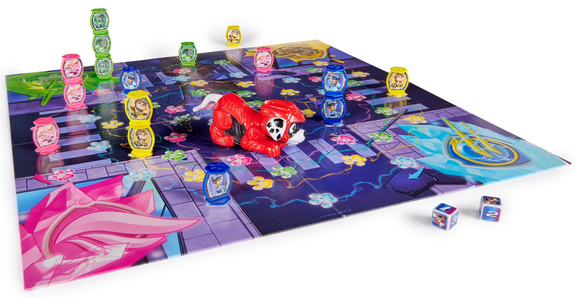 Das 50,8 x 50,8 cm große Spielbrett symbolisiert die Stadt Adventure City, auf die der Meteorit gefallen ist. Die Hunde haben magische Kräfte erlangt und der tollpatschige Marshall bewegt sich auf dem Spielbrett.