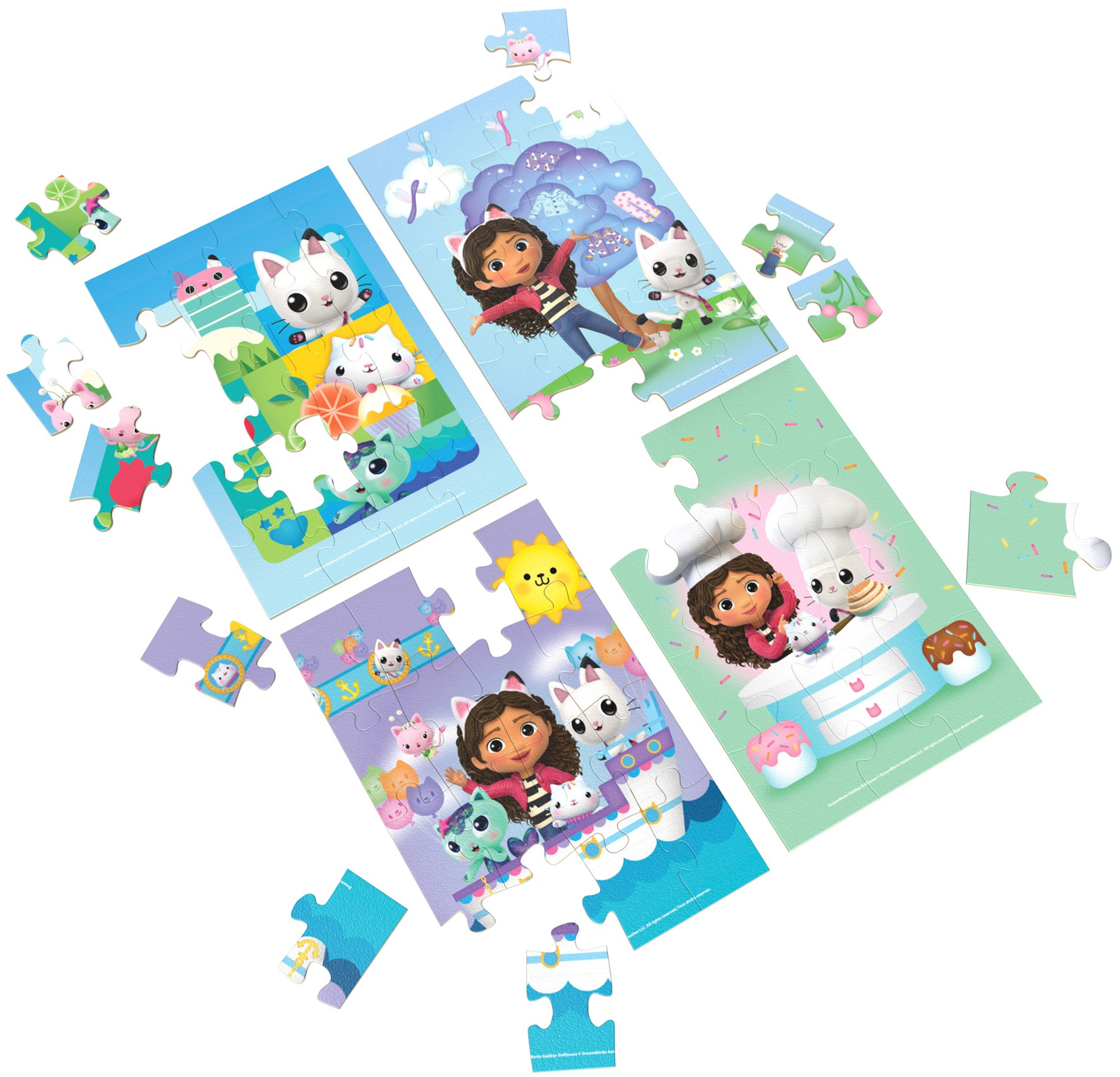 - Gabi's Cat House Puzzle besteht aus 4 Puzzles mit unterschiedlicher Anzahl von Teilen, die jeweils 22,7 x 15,2 cm groß sind. Das Set enthält Puzzles mit 12, 16, 20 und 24 Teilen.