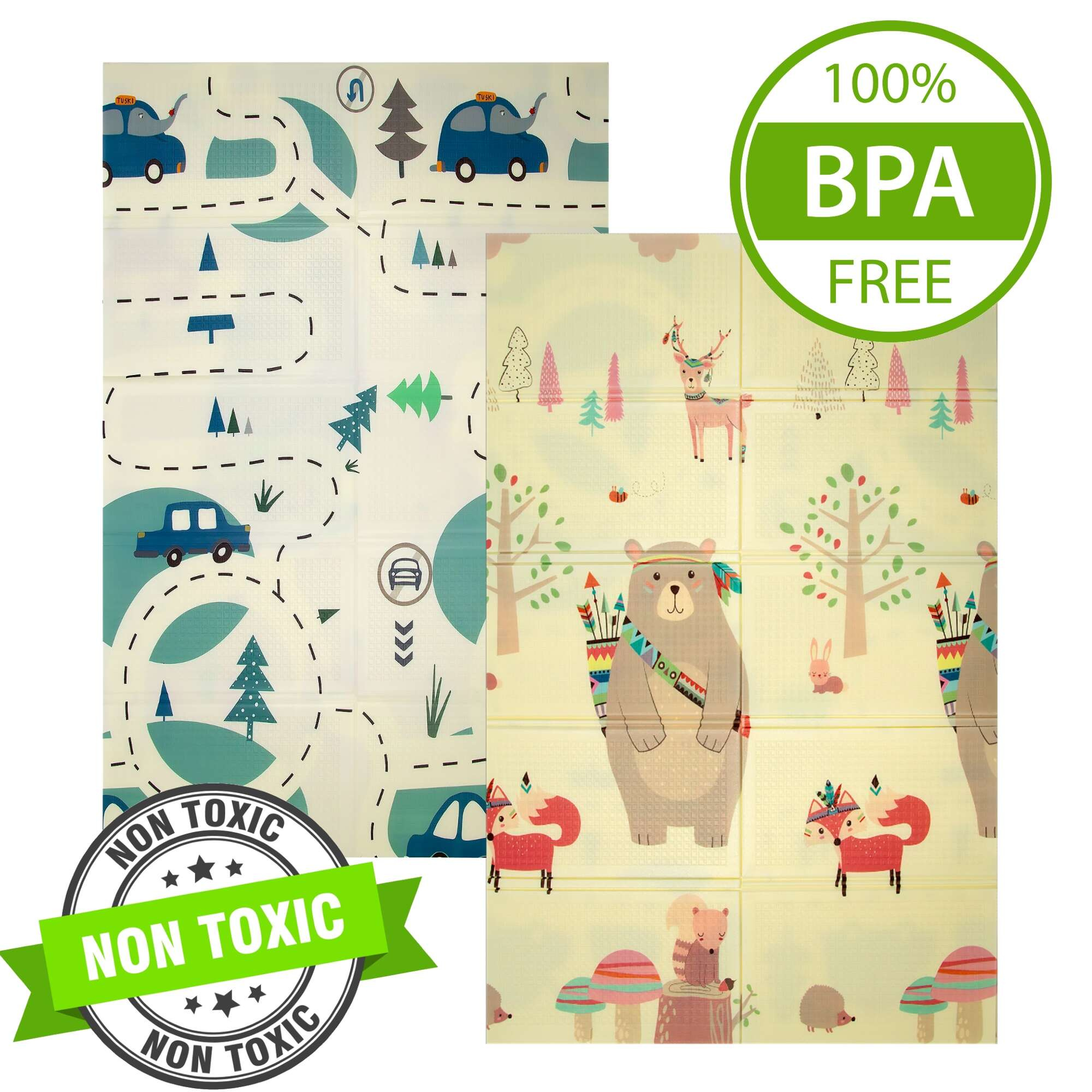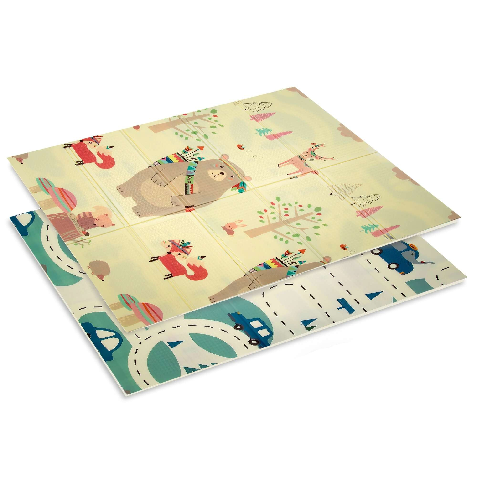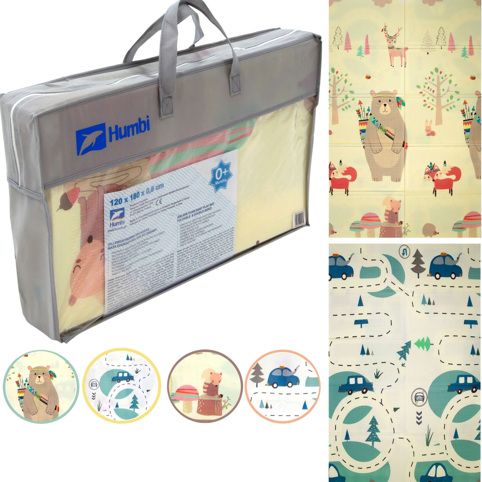 GROSSE, DOPPELSEITIGE, FALTBARE HUMBI SCHAUMSTOFFMATTE FÜR BABYS UND KINDER + TASCHE MIT TRAGEGRIFF