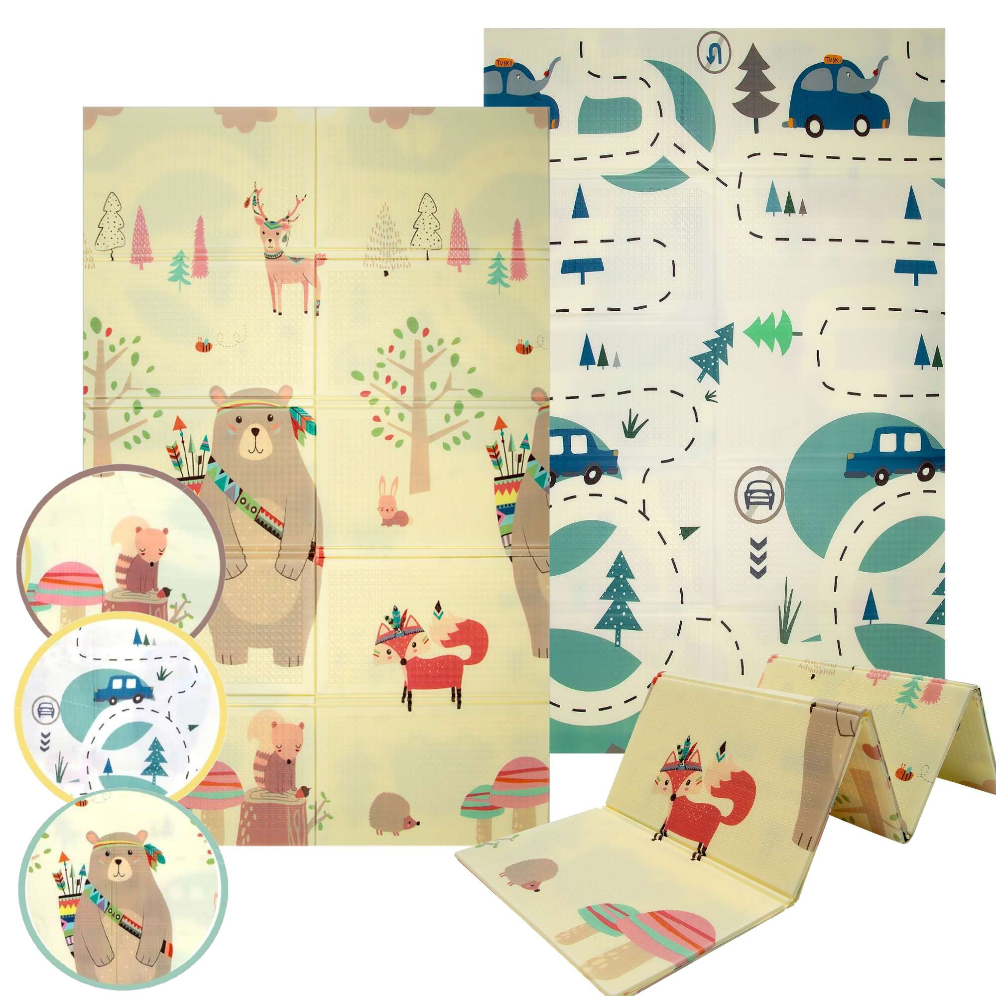 HUMBI Spielmatte Baby, Krabbelmatte, XPE Schaumstoff, Doppelseitig, Flatbar, Wasserdicht, Extra Größe, Teppich Babymatte, Rutschfest, 120x180 Teddys, Füchse und Autos