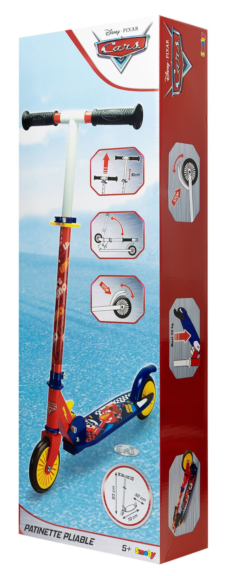 Der zweirädrige Scooter wurde von der Firma Smoby entwickelt, die für ihre hohe Qualität bekannt ist. Die Inspiration für diesen Scooter stammt aus der Zeichentrickserie Cars.