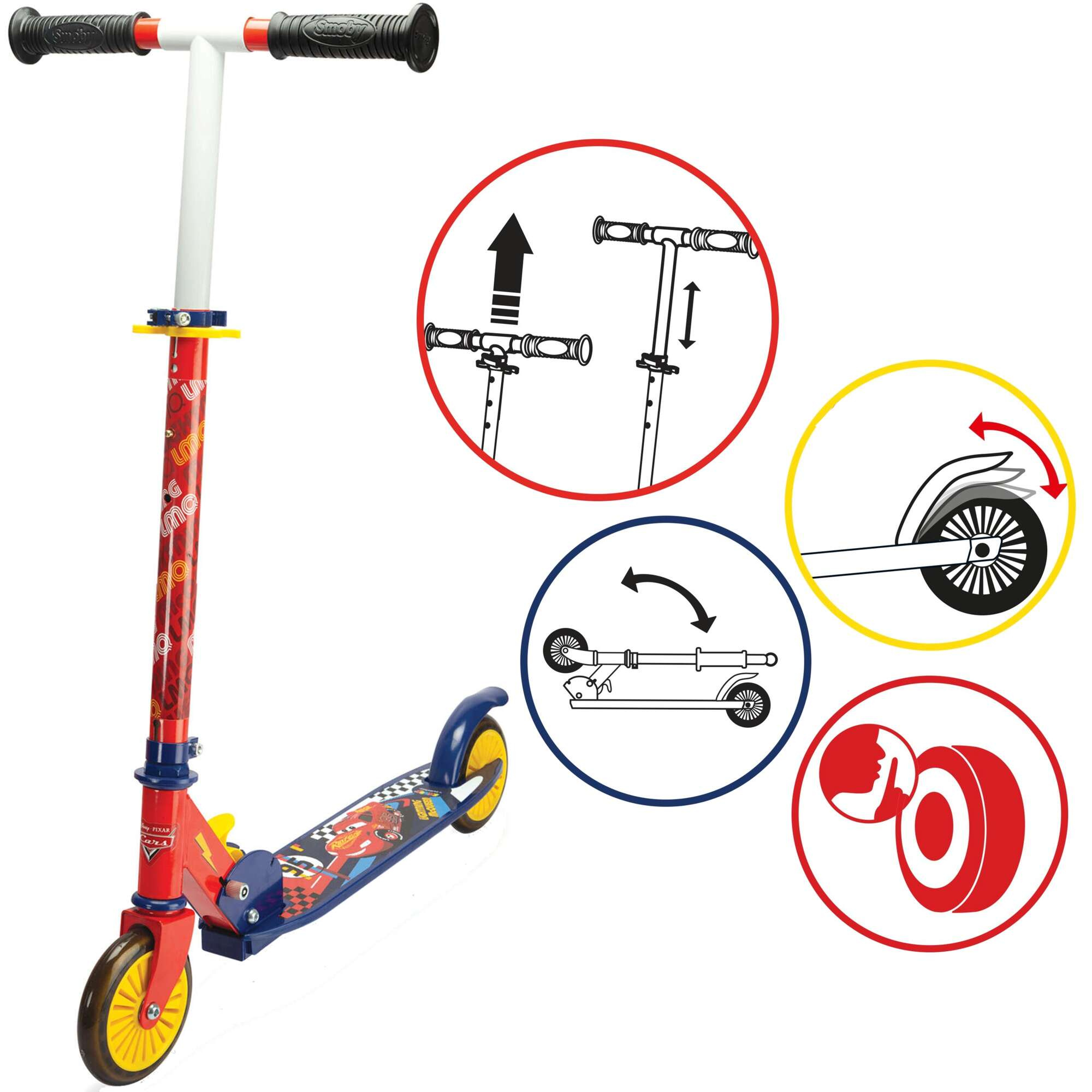 - Der Scooter ist mit den Figuren aus dem Zeichentrickfilm Cars verziert und eignet sich dank seiner universellen Farbgebung für alle kleinen Fans und Fan-Girls.