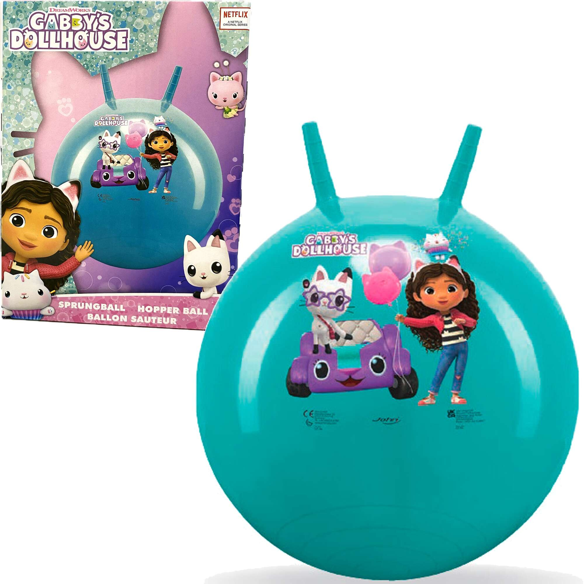 - Der Hüpfball ist türkisfarben und hat zwei Ecken zum Greifen. Er zeigt Grafiken mit Figuren aus der Fernsehserie und wird sicher jedem Kind gefallen, das gerne hüpft.