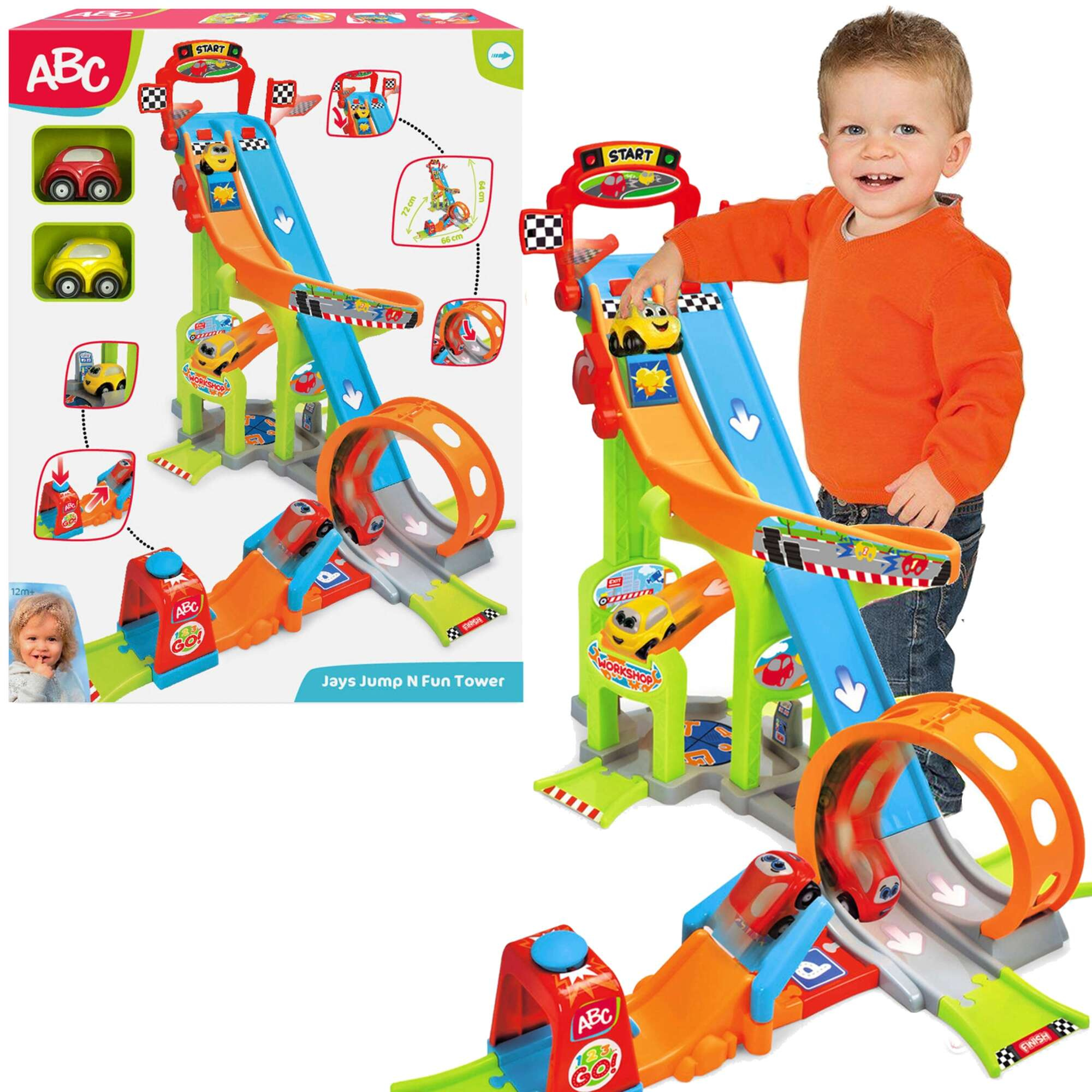 ABC Cars Schienen-Set + Jays Jump und Fun Tower Fahrzeuge