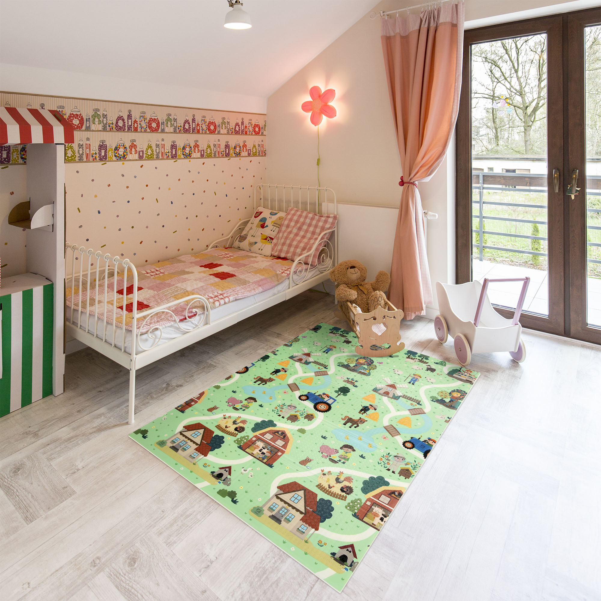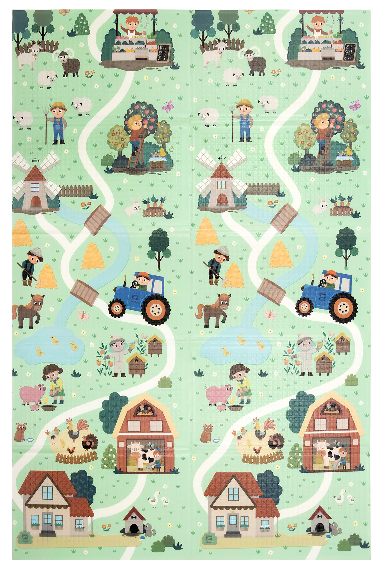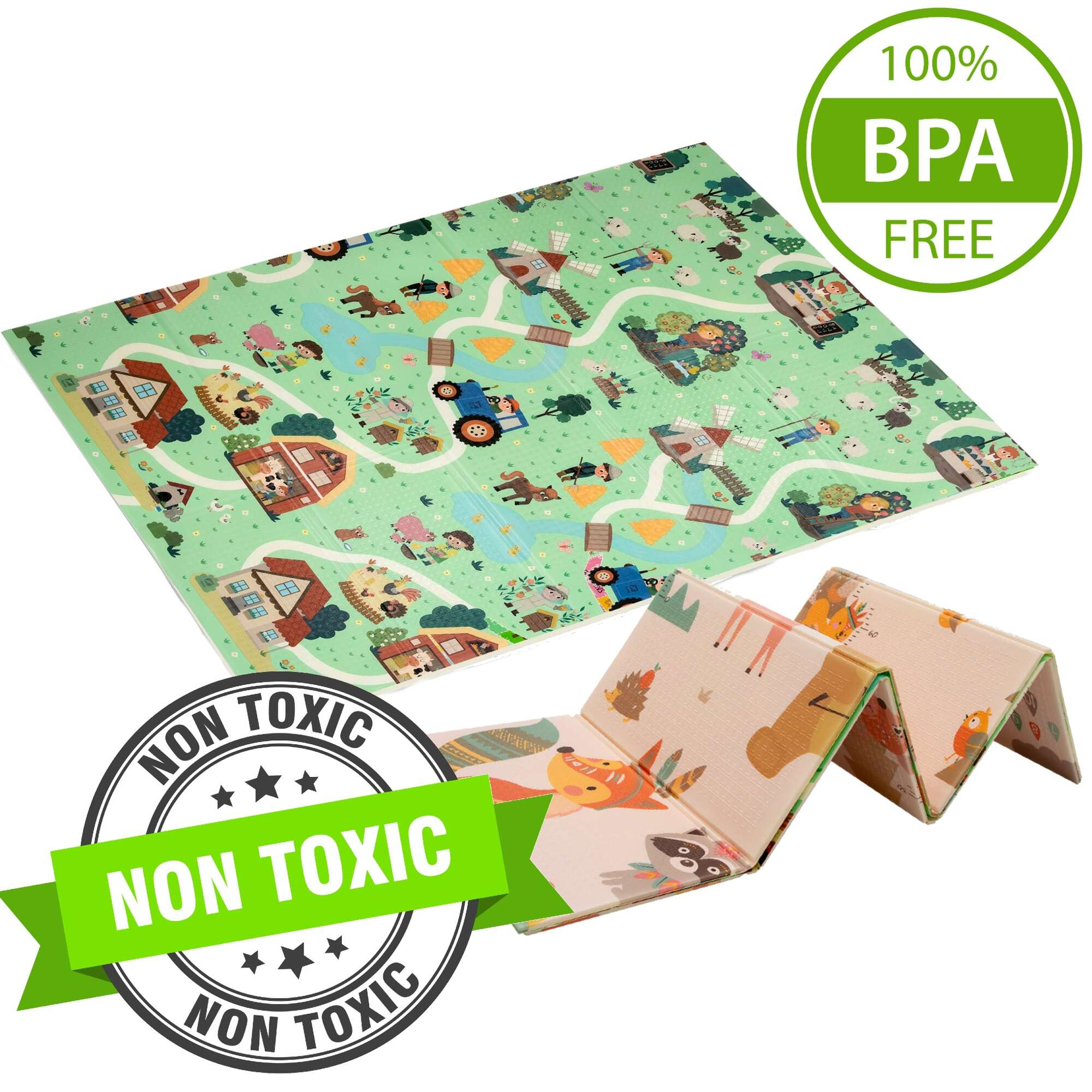 HUMBI Spielmatte Baby, Krabbelmatte, XPE Schaumstoff, Doppelseitig, Flatbar, Wasserdicht, Extra Größe, Teppich Babymatte, Rutschfest, 120x180 cm, Dorf und Wald