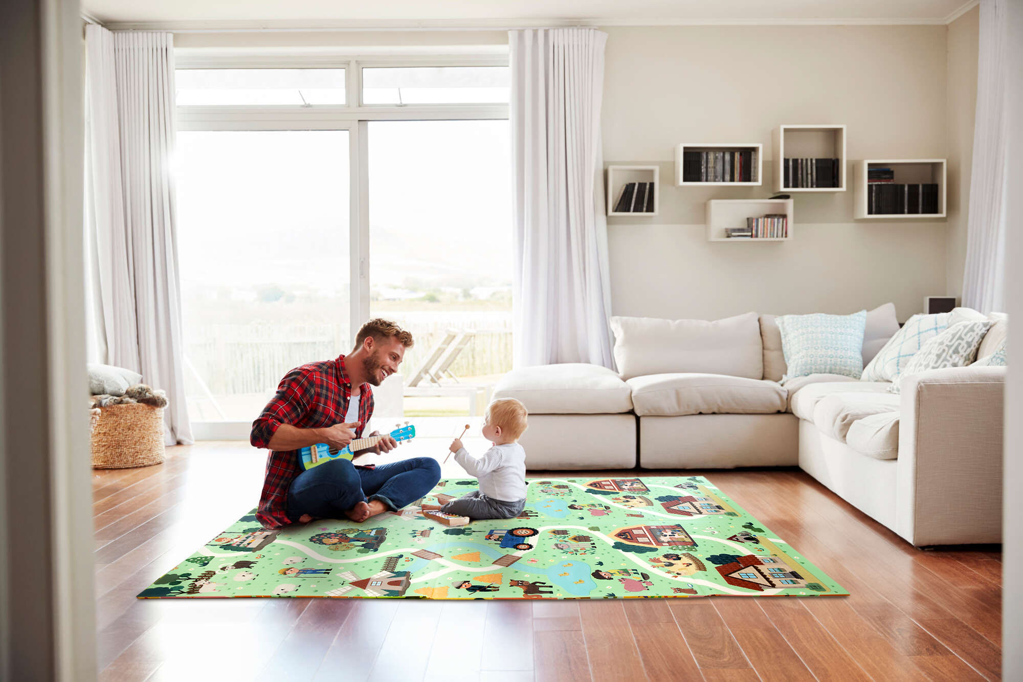 Die Matte istideal zum Krabbeln und Laufen lernen und alssicherer Platz zum Spielen.