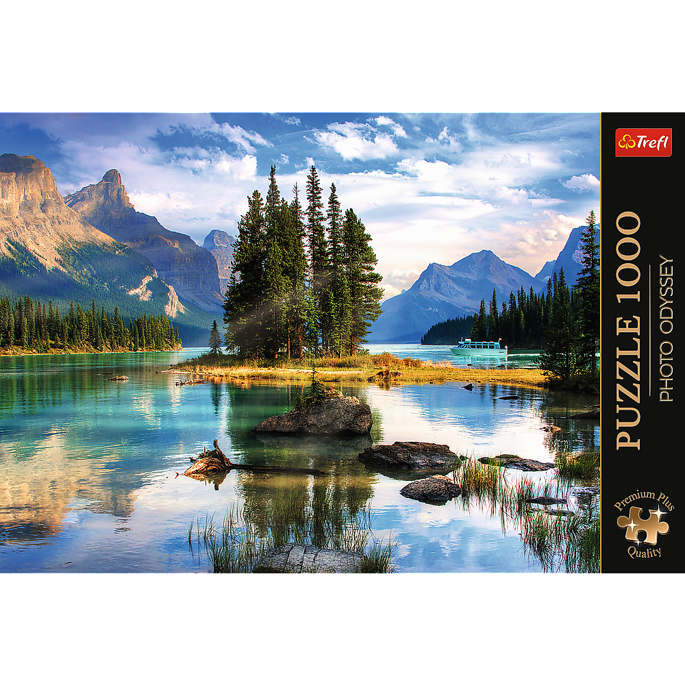 - Das Set besteht aus 1.000 Elementen und ermöglicht es Ihnen, ein wunderschönes Bild mit der Aussicht auf Spirit Island, Kanada, zu gestalten. Das zusammengesetzte Bild misst 68,3 x 48 cm.