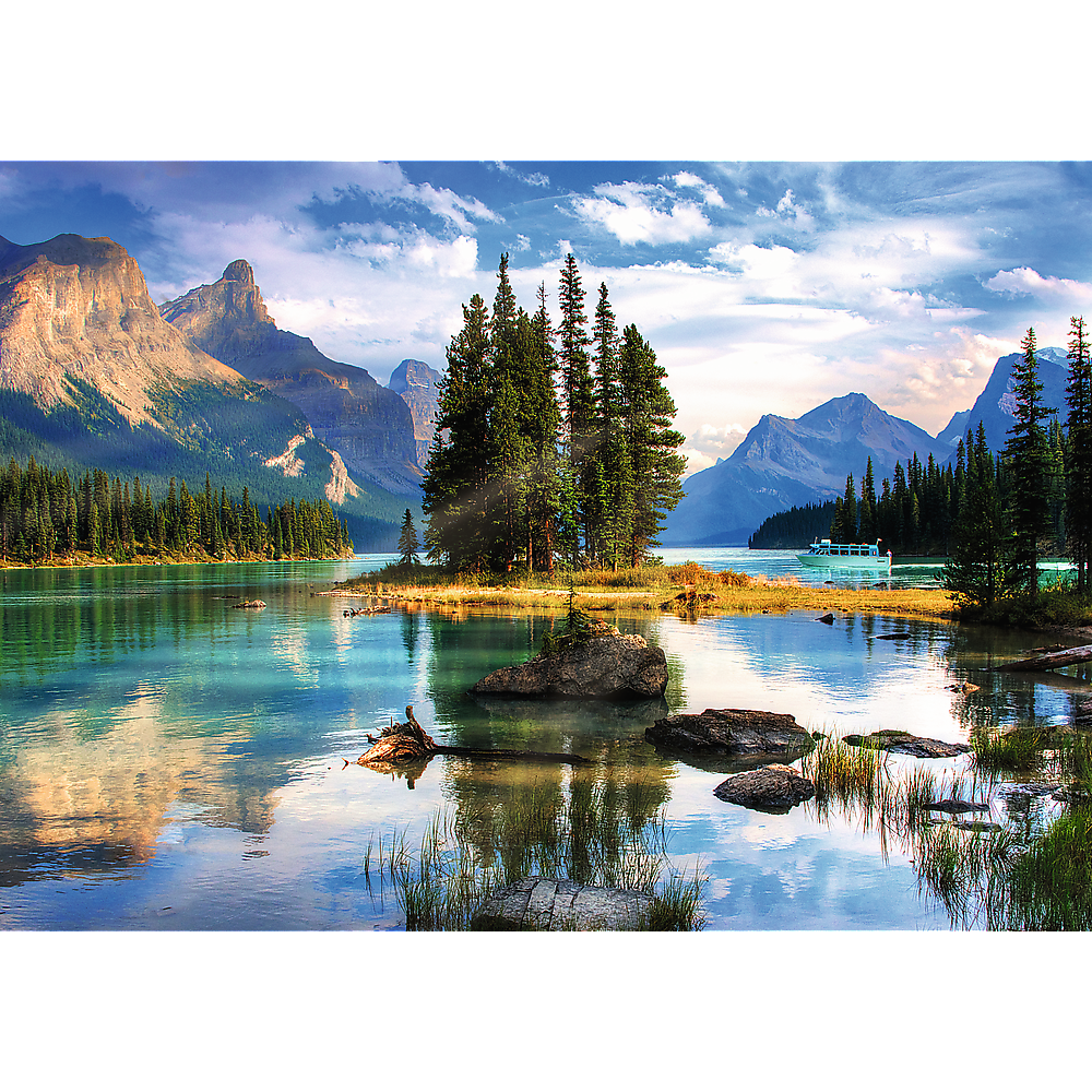 Das Set besteht aus 1000 Teilen und ermöglicht es Ihnen, ein wunderschönes Bild mit derAnsicht von Spirit Island, Kanada, zu erstellen.