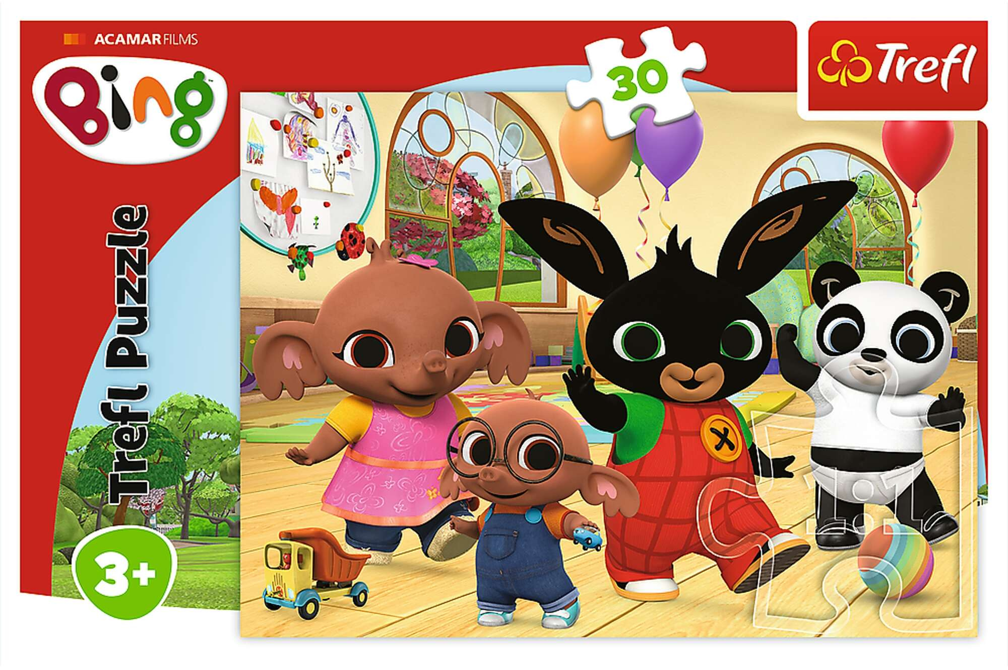 Trefl Puzzle 30 Elemente mit Bing ist ein fröhlich-buntes Puzzle für die Jüngsten.