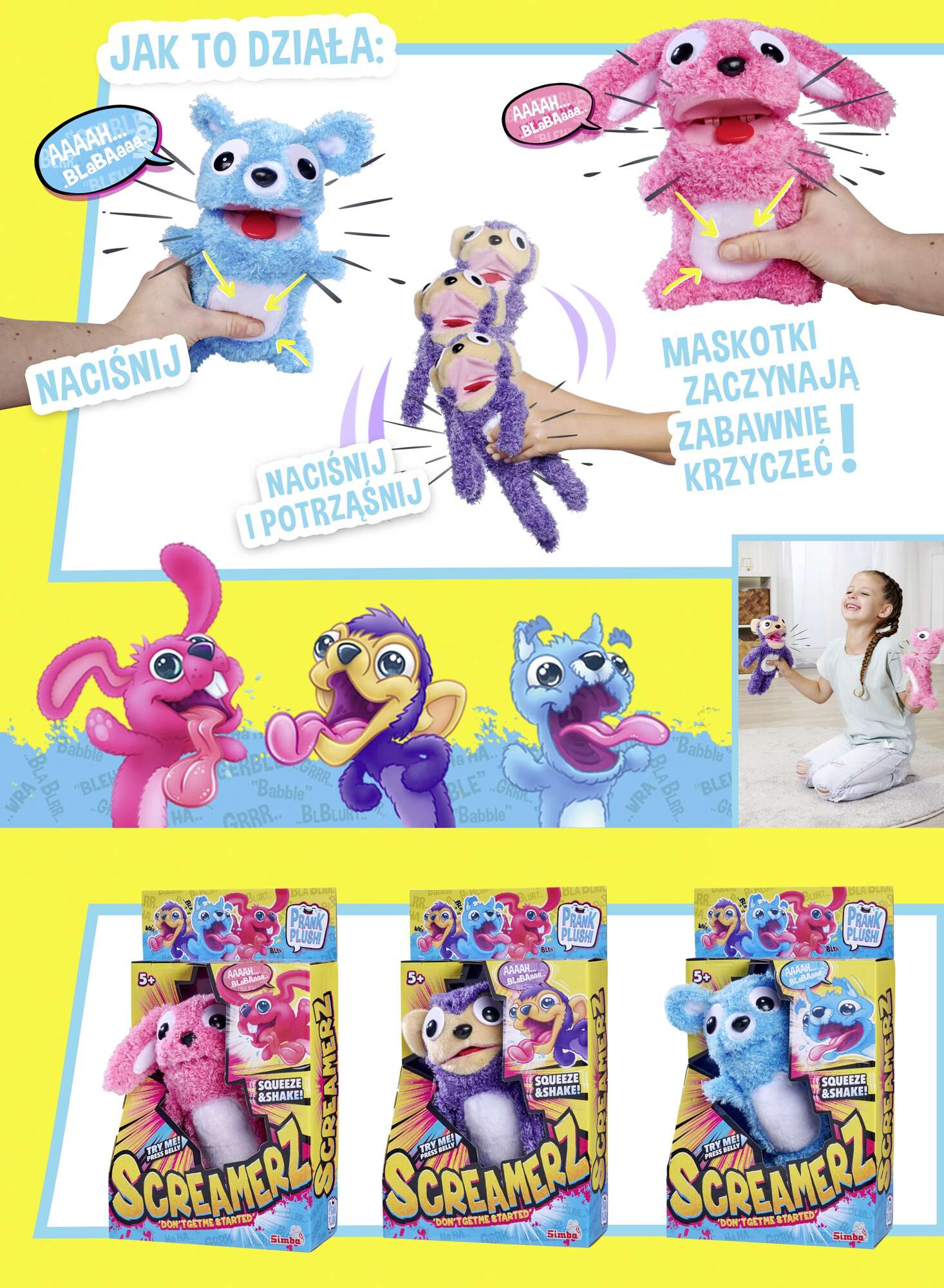 - ScreamerZ ist ein Spielzeug des weltbekannten Unternehmens Simba, das seit Jahren mit hohem Qualitätsanspruch Spielzeug für die Kleinsten entwirft. Der rosa Hase ist ein unverzichtbarer Begleiter für jedes Kind, um anderen zu helfen, lustige Witze zu mach
