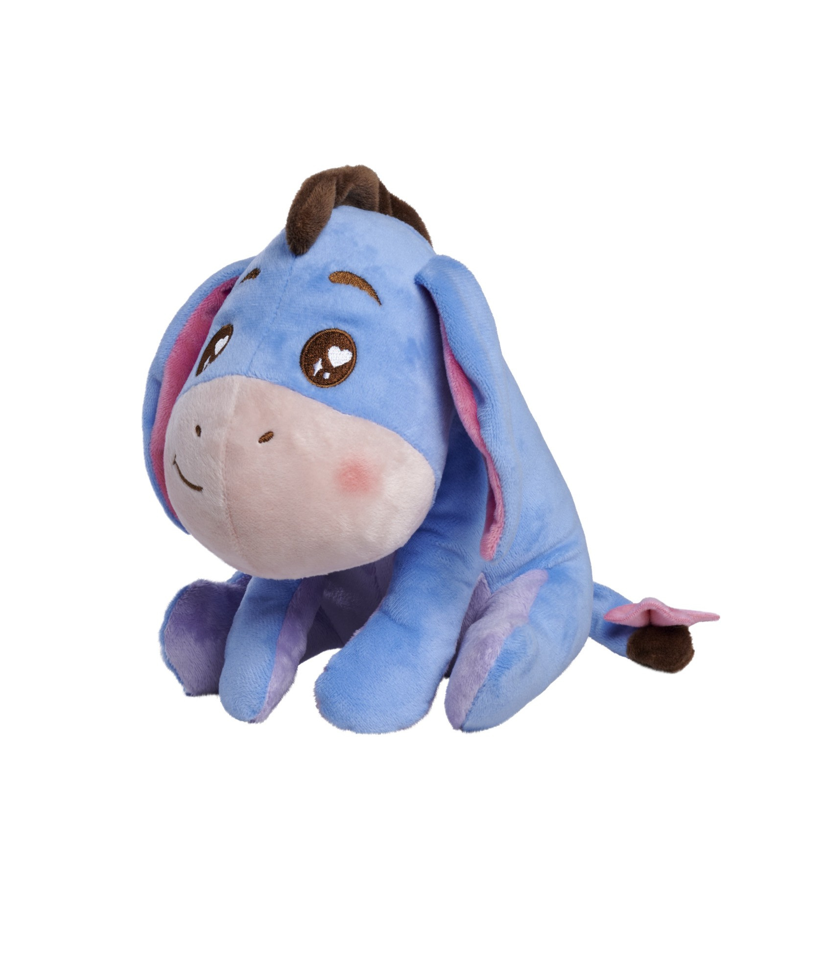 - Eeyore ist ein sehr niedlicher Esel, der, obwohl er oft mürrisch ist, seine Freunde sehr liebt. Das Maskottchen hat Ohren, gestickte Augen und ein Lächeln.