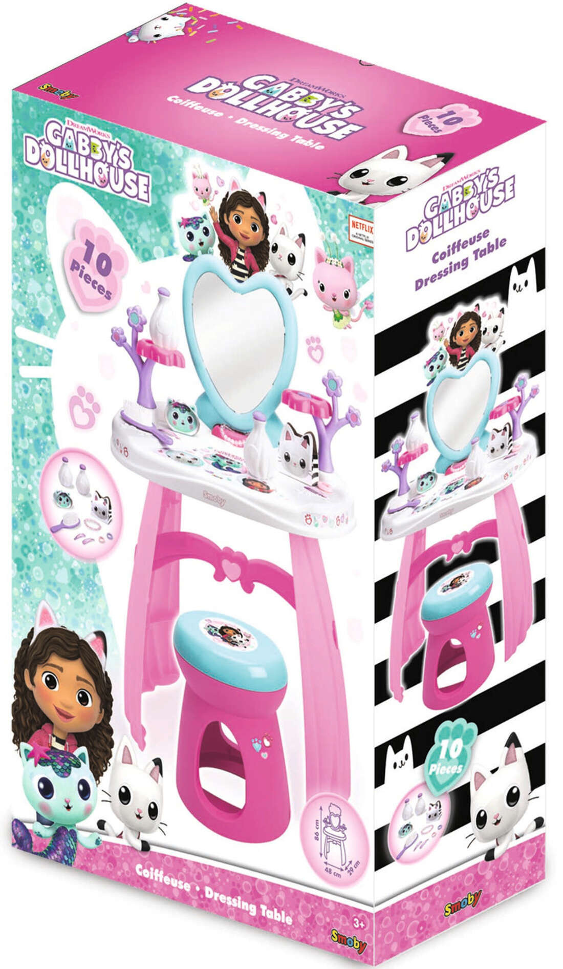- Das Set besteht aus einem niedlichen Schminktisch mit einem sicheren ovalen Spiegel und Platz für verschiedene Dekorationen sowie einem Stuhl für das Mädchen. Der Schminktisch ist in Gabis Lieblingsfarben - Lila und Rosa - gehalten.