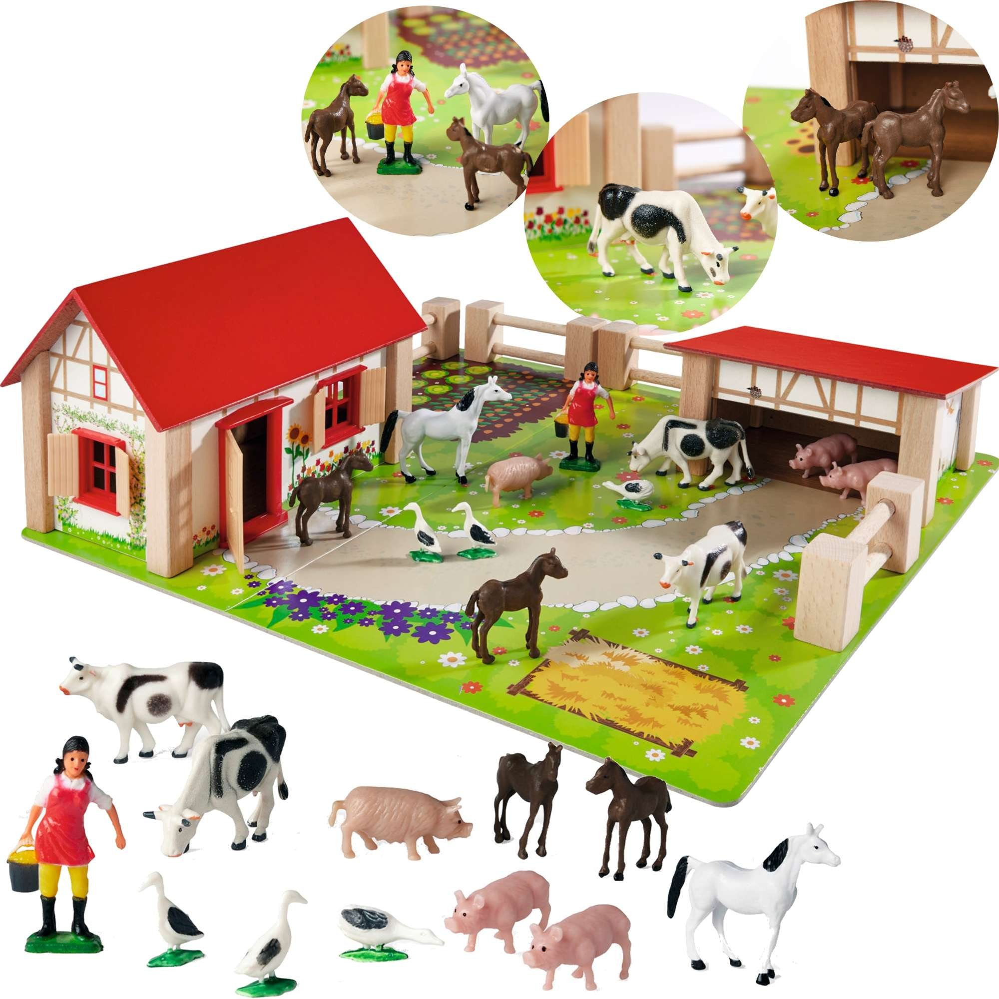Großes Bauernhaus aus Holz + Tierfiguren 23 Stück