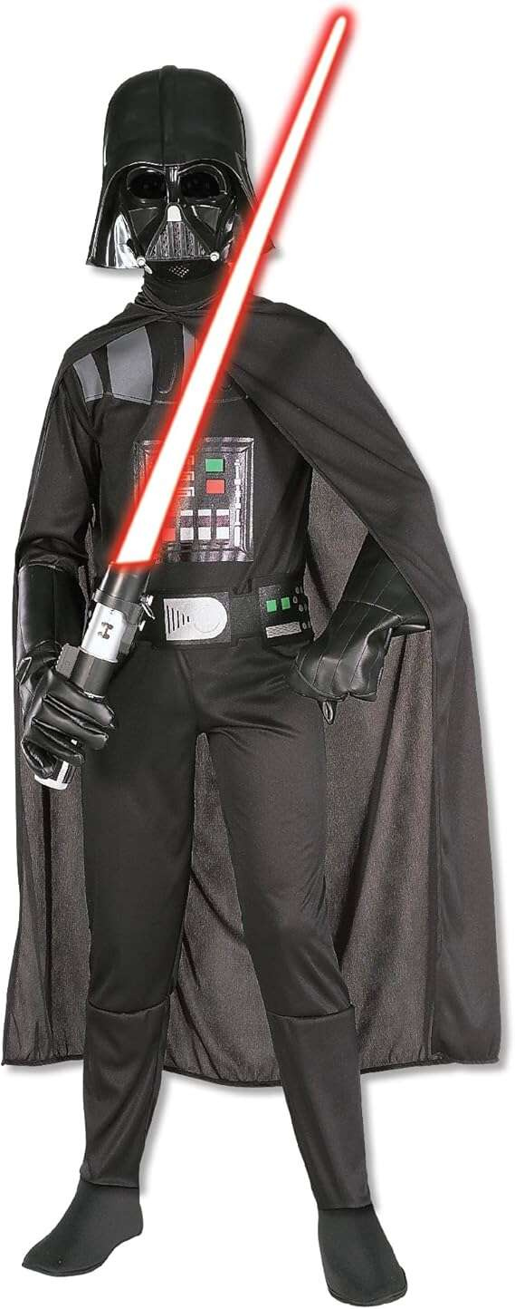 Es umfasst ein schwarzes Kostüm mit einer Maske, damit das Kind einem der Hauptgegner der Serie - Darth Vader - ähneln kann.