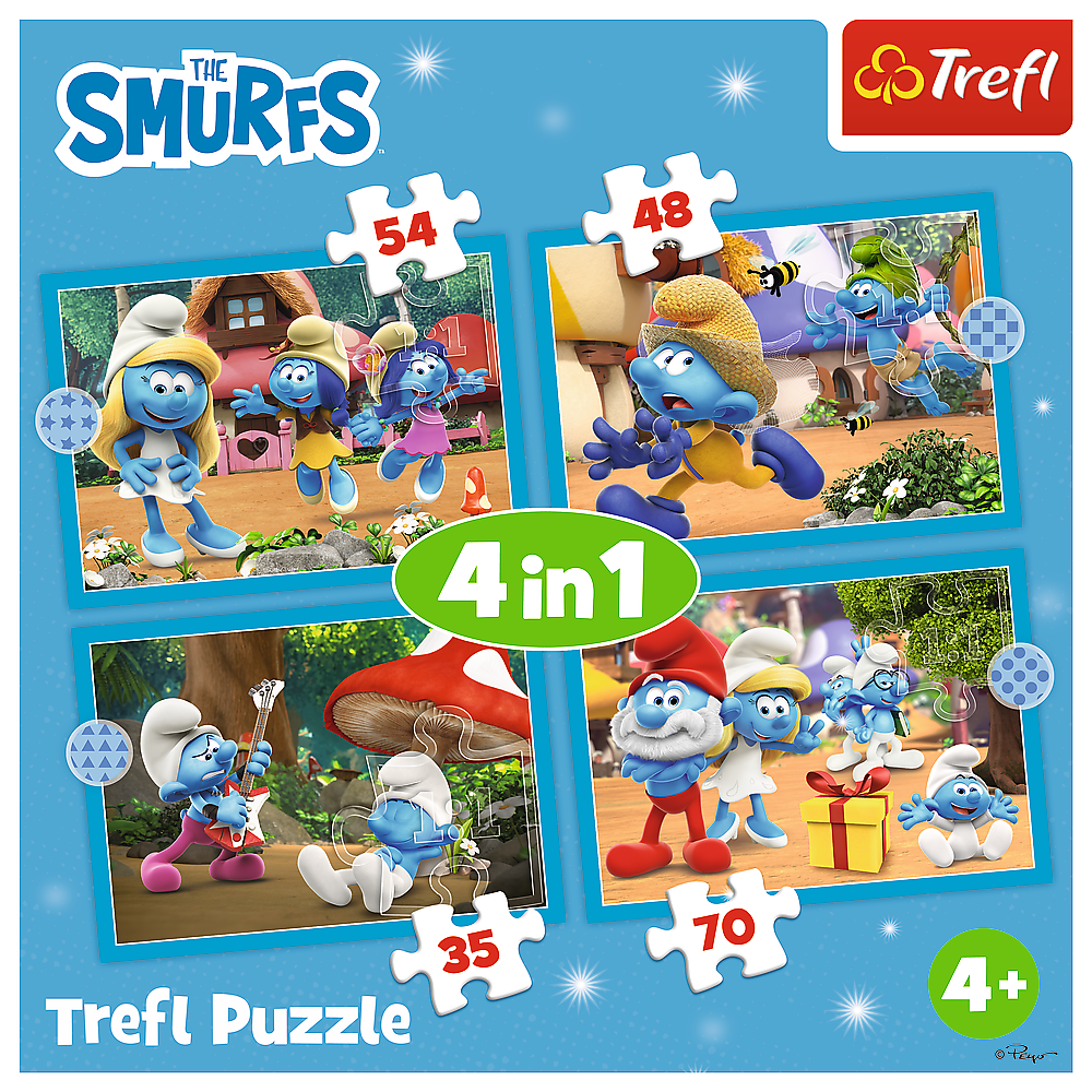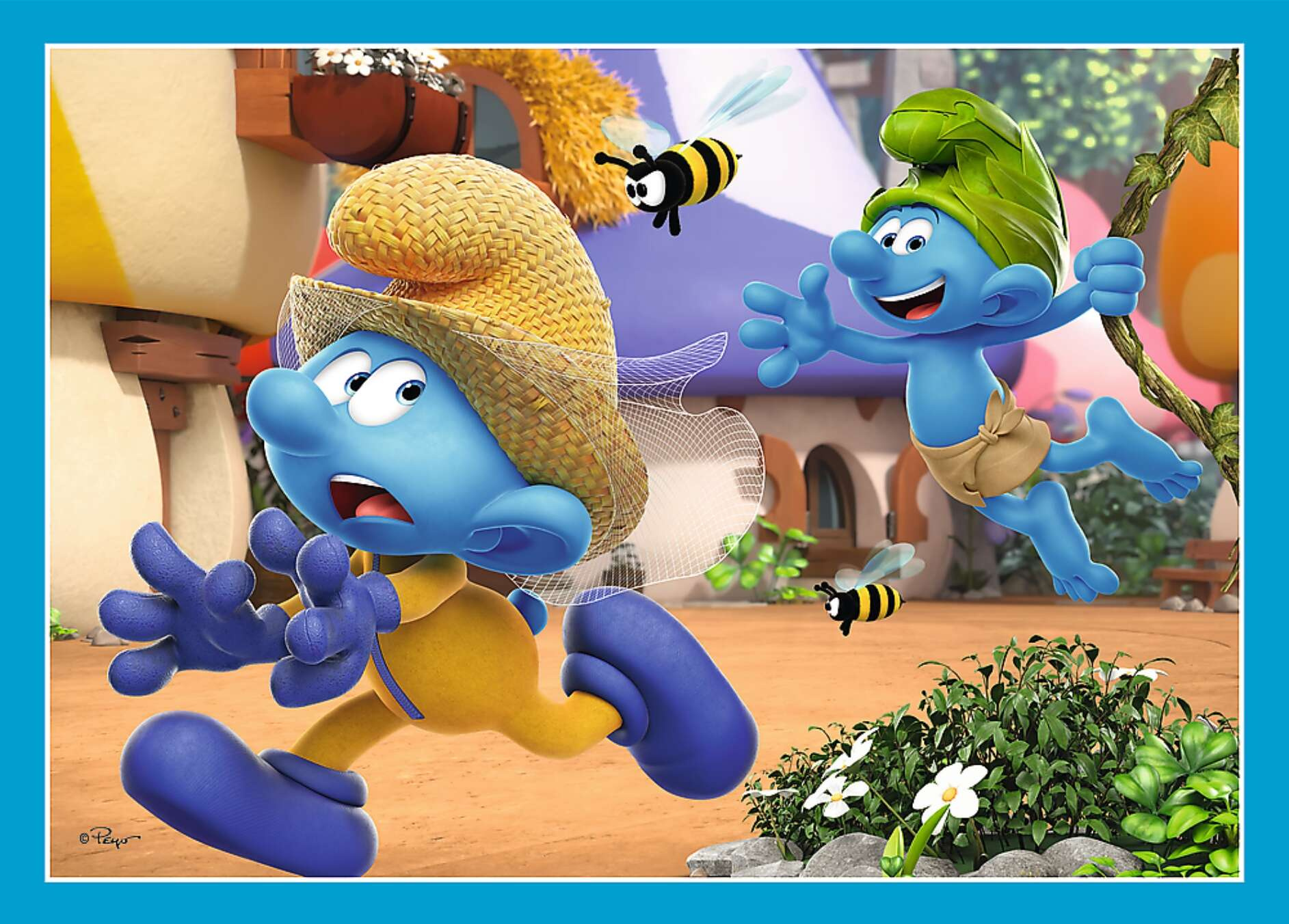 Trefl Puzzle 4in1 Smurf Village Die Schlümpfe buntes Puzzle für die Jüngsten ab 4