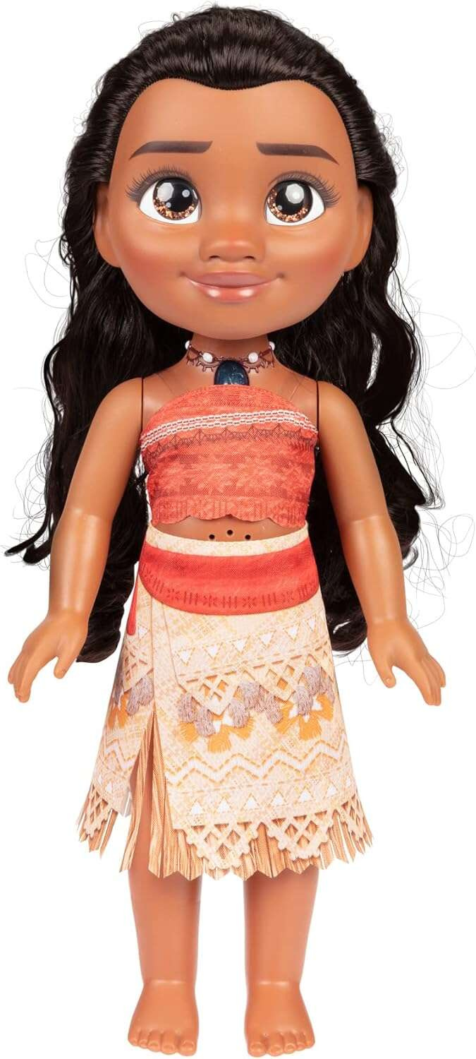- Die Moana (Vaiana) Puppe hat langes braunes Haar, das gestylt werden kann. Ihr vom Film inspiriertes Outfit besteht aus einem markanten Oberteil und einem Rock mit tropischen Mustern. Um den Hals trägt sie eine Muschelkette, die ihre Verbundenheit mit dem